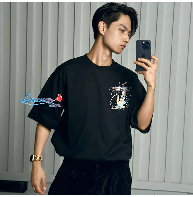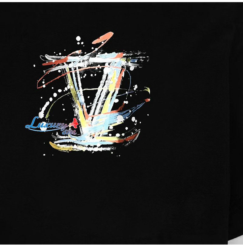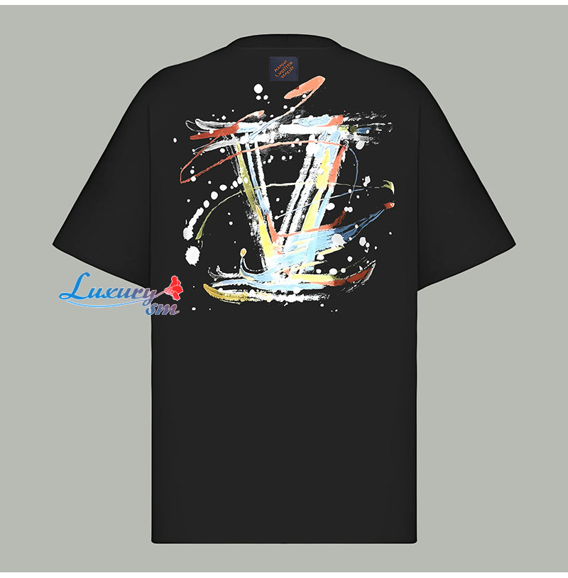 LOUIS VUITTON-06096 루이비통 블랙 LV 시그니처 프린트 장식 티셔츠 남여공용