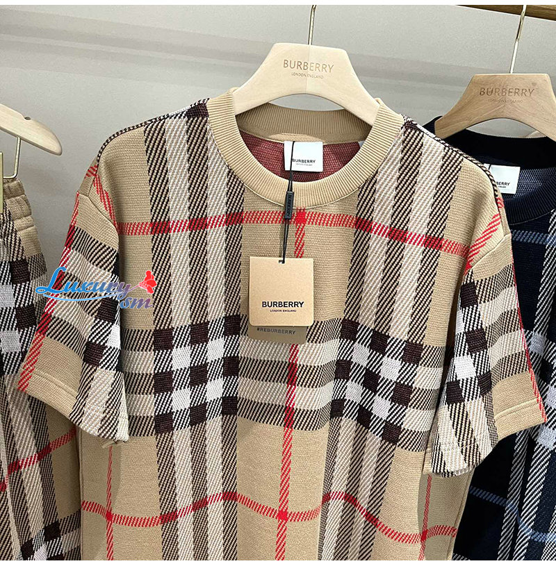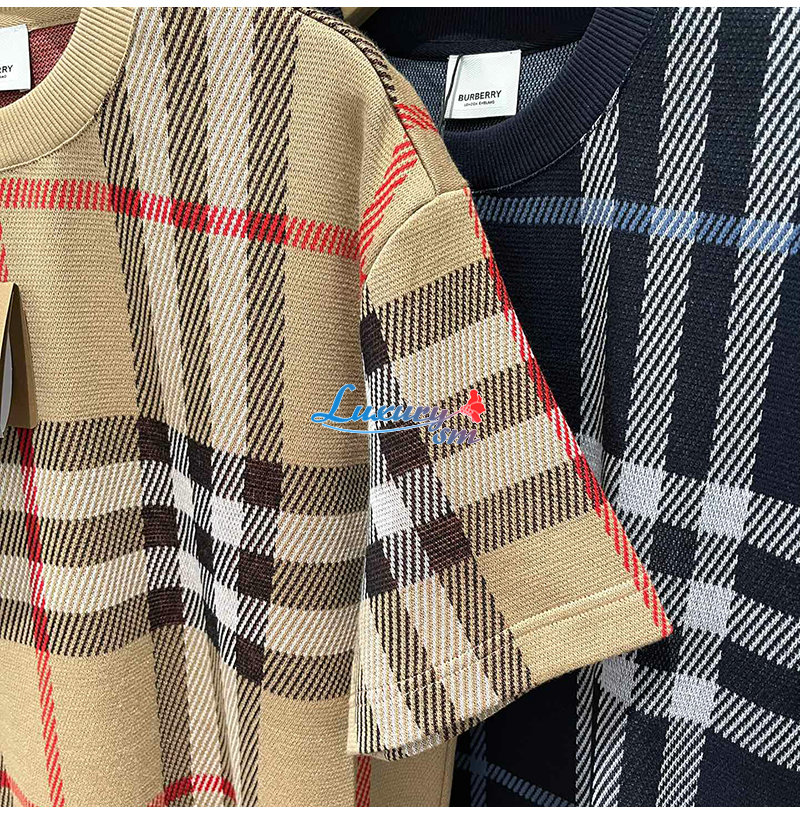 BURBERRY-06223 버버리 베이지 니트 코튼 체크 티셔츠 남여공용