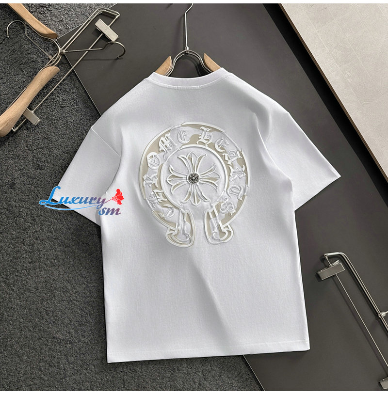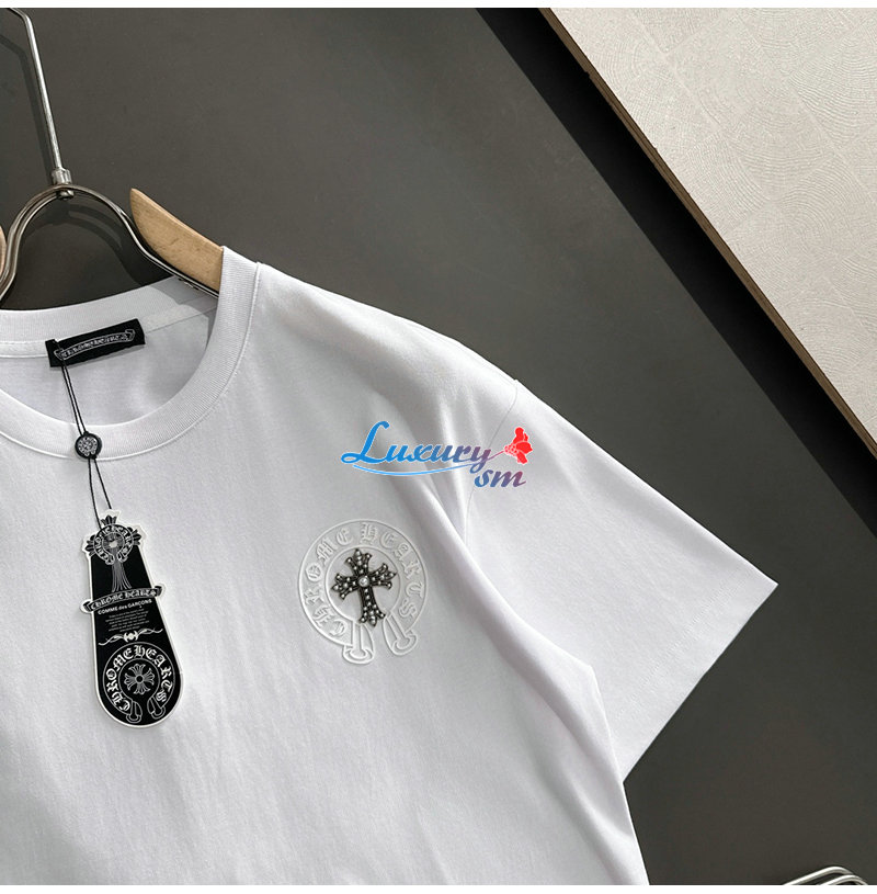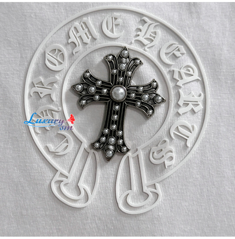CHROMEHEARTS-062614 크롬하츠 화이트 메탈 십자가 장식 티셔츠 남성용