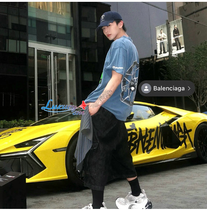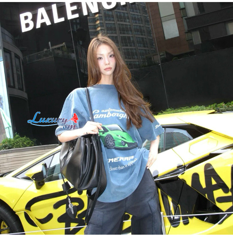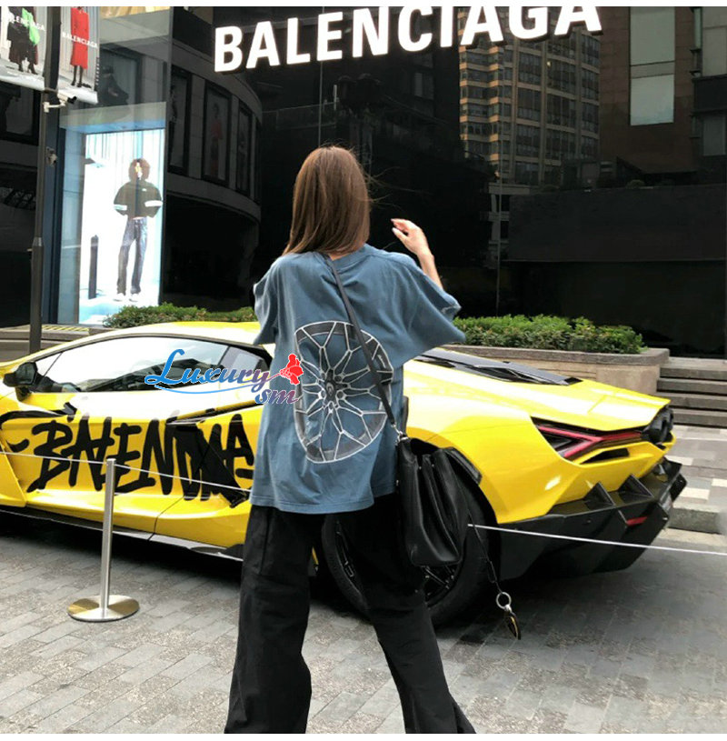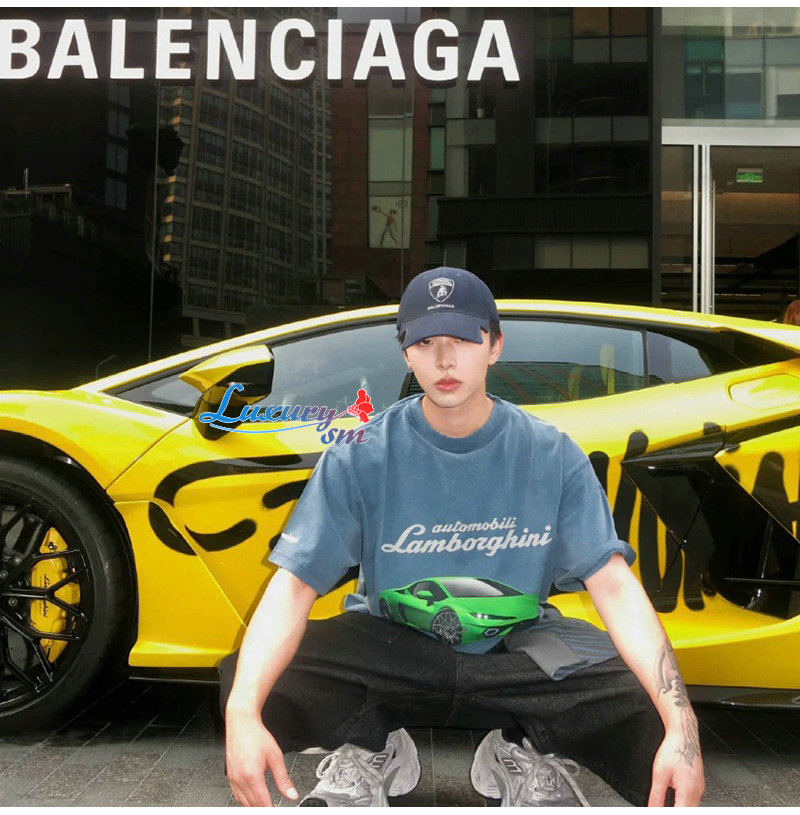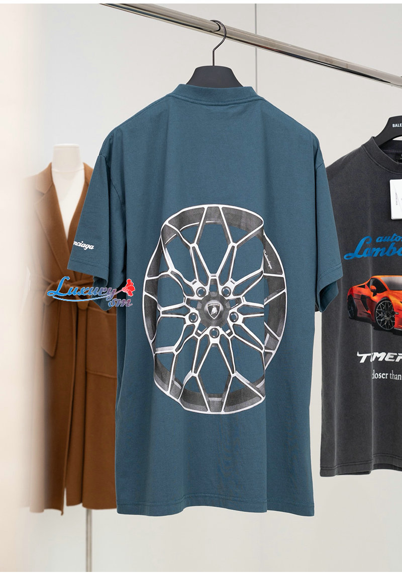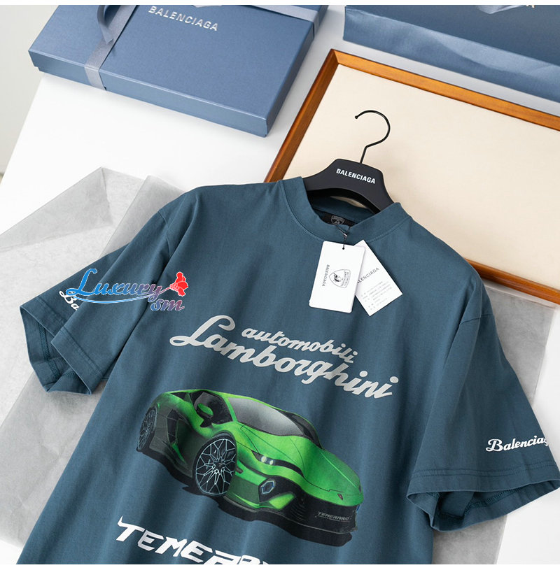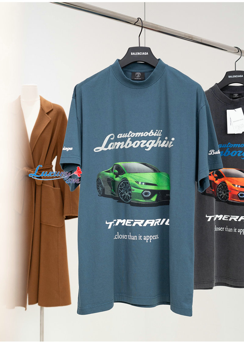BALENCIAGA-831305 발렌시아가 블루 오토모빌리 람보르기니 티셔츠 남여공용