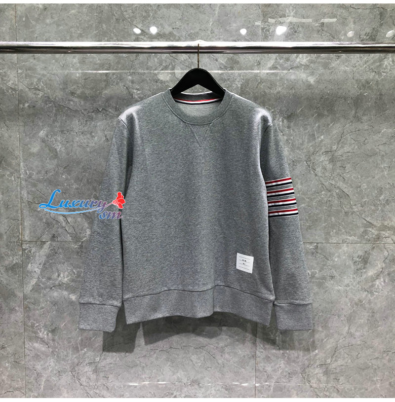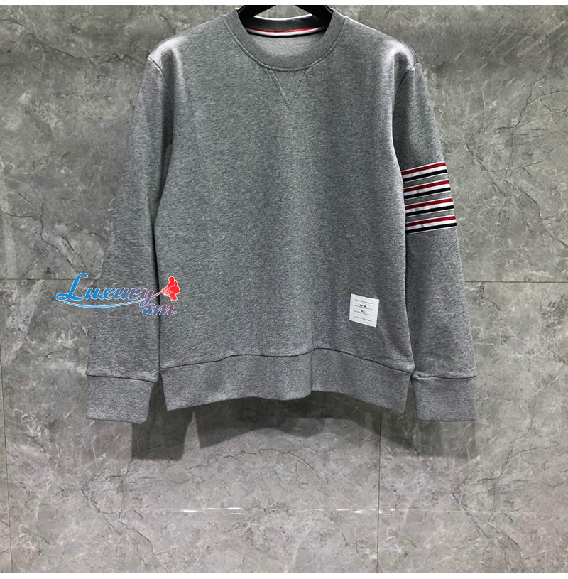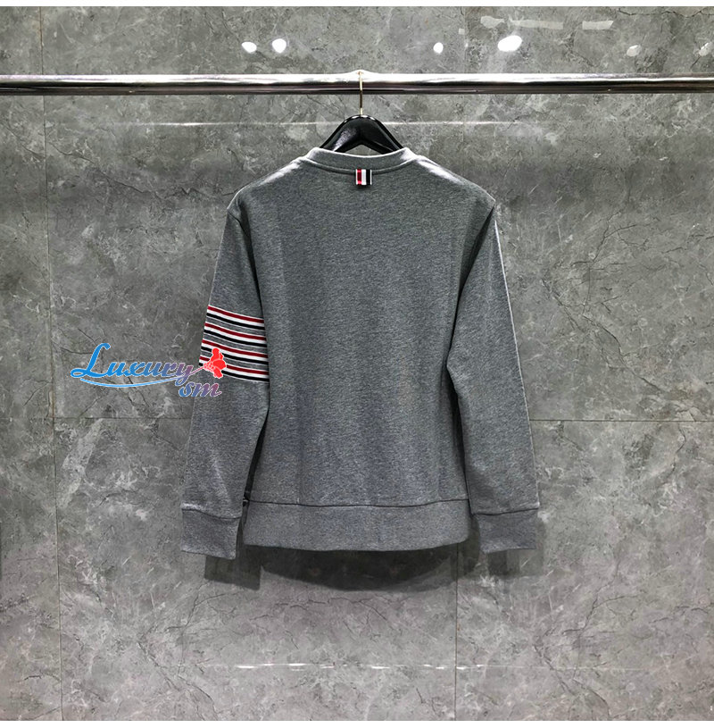 THOM BROWNE-08203 톰 브라운 그레이 스트라이프 장식 스웨트셔츠 남성용