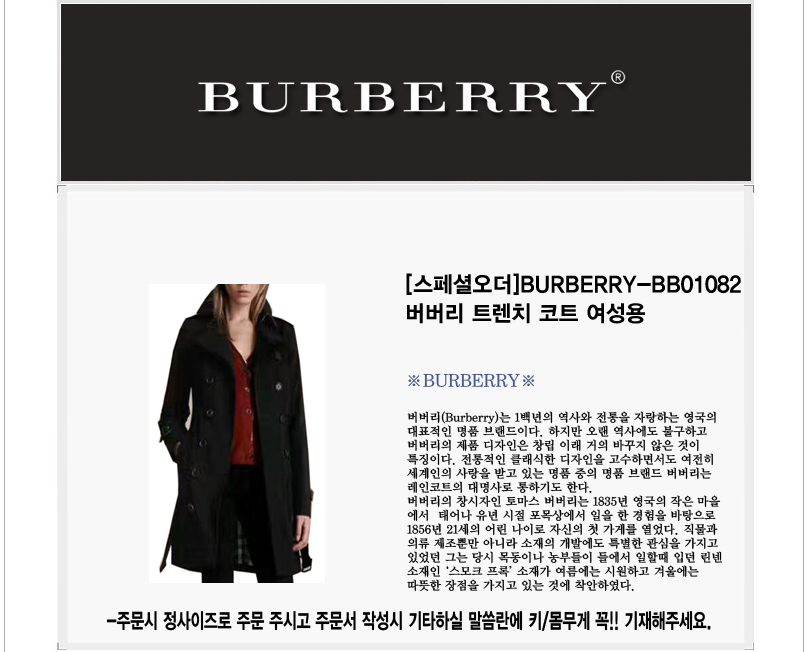 [스페셜오더]BURBERRY-BB01082 버버리 트렌치 코트 여성용
