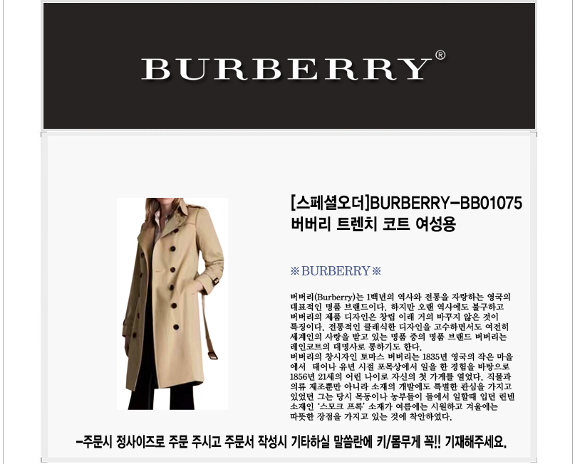 [스페셜오더]BURBERRY-BB01075 버버리 트렌치 코트 여성용