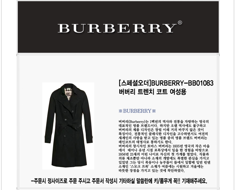 [스페셜오더]BURBERRY-BB01083 버버리 트렌치 코트 여성용