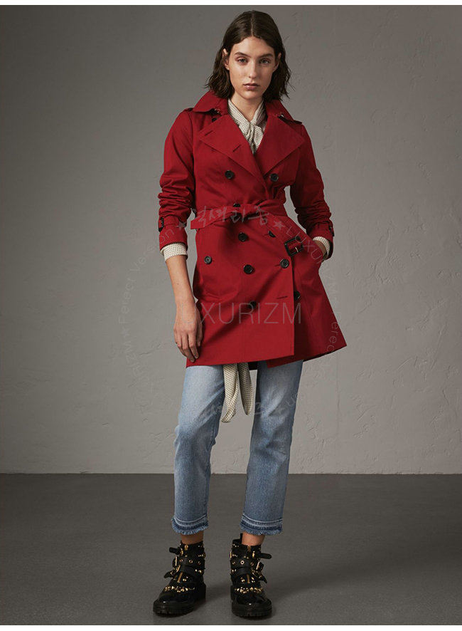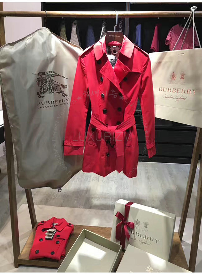 [스페셜오더]BURBERRY-39970281 버버리 샌드링엄 레드 쇼트 헤리티지 트렌치코트 여성용