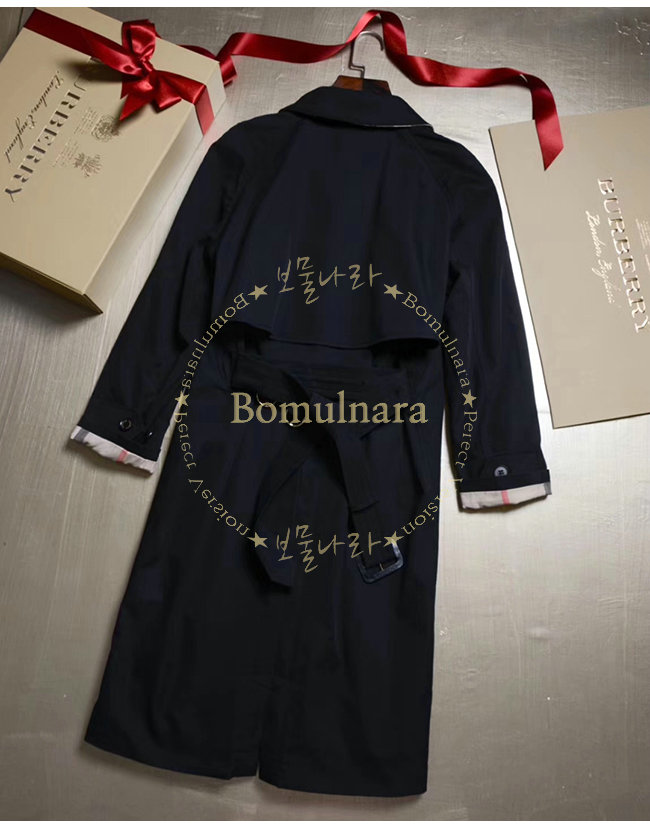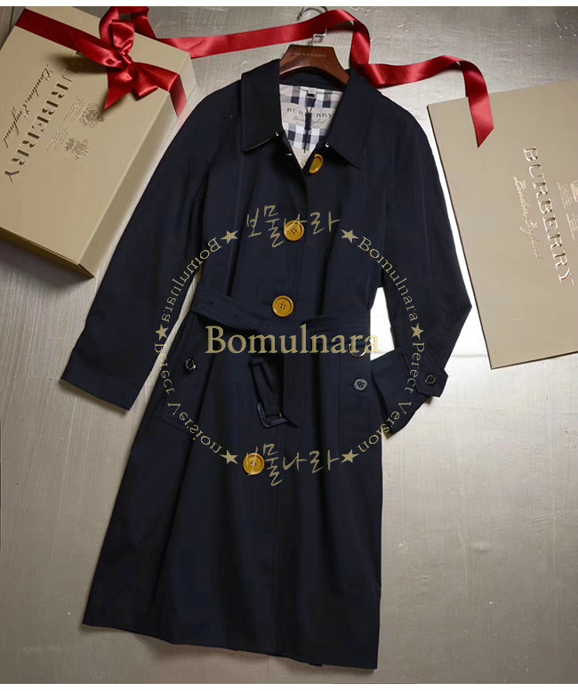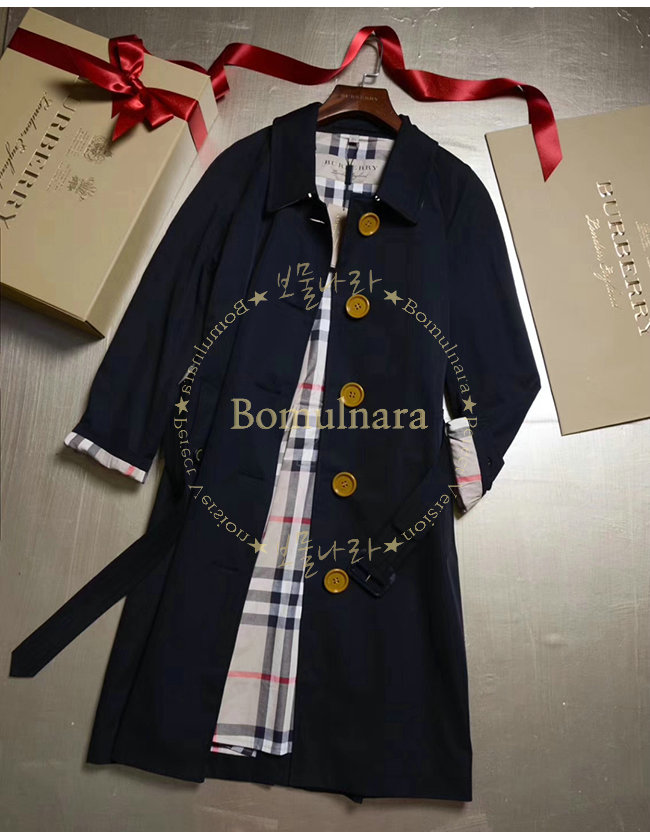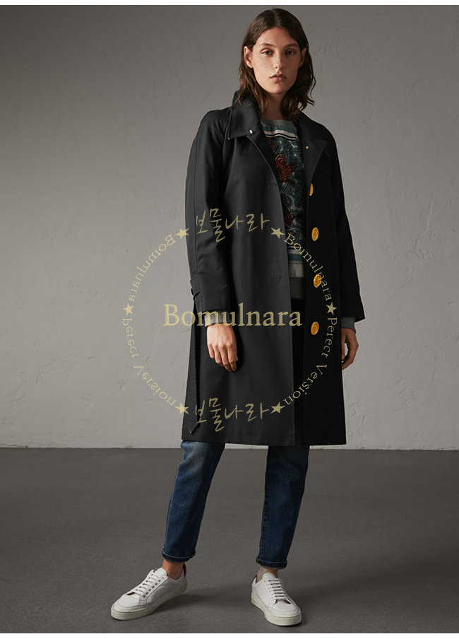 [스페셜오더]BURBERRY-40556961버버리 레진 버튼 코튼 개버딘 블랙 트렌치코트 여성용