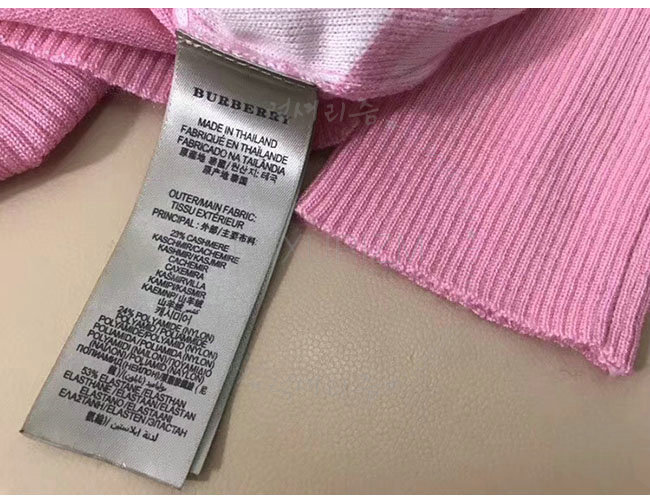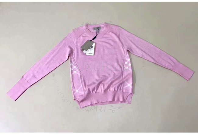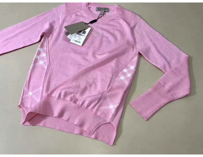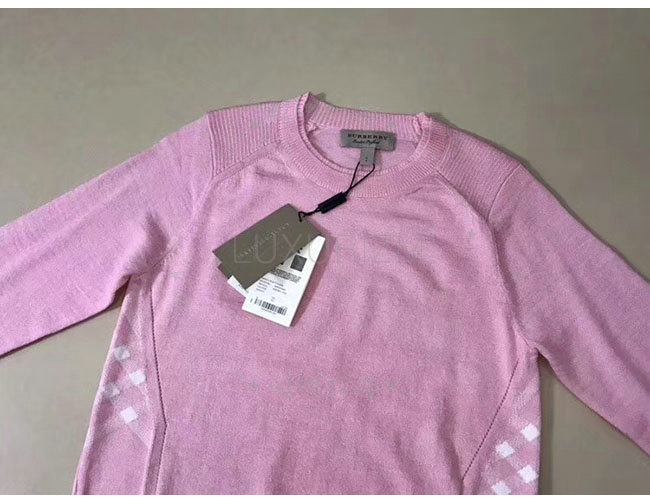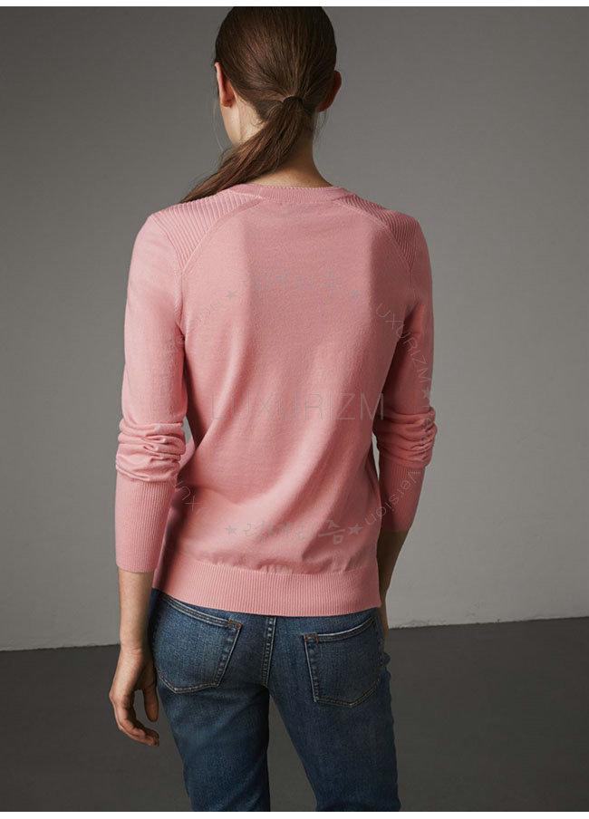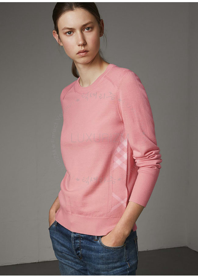 BURBERRY-40557731 버버리 핑크 체크 디테일 메리노 울 스웨터 여성용