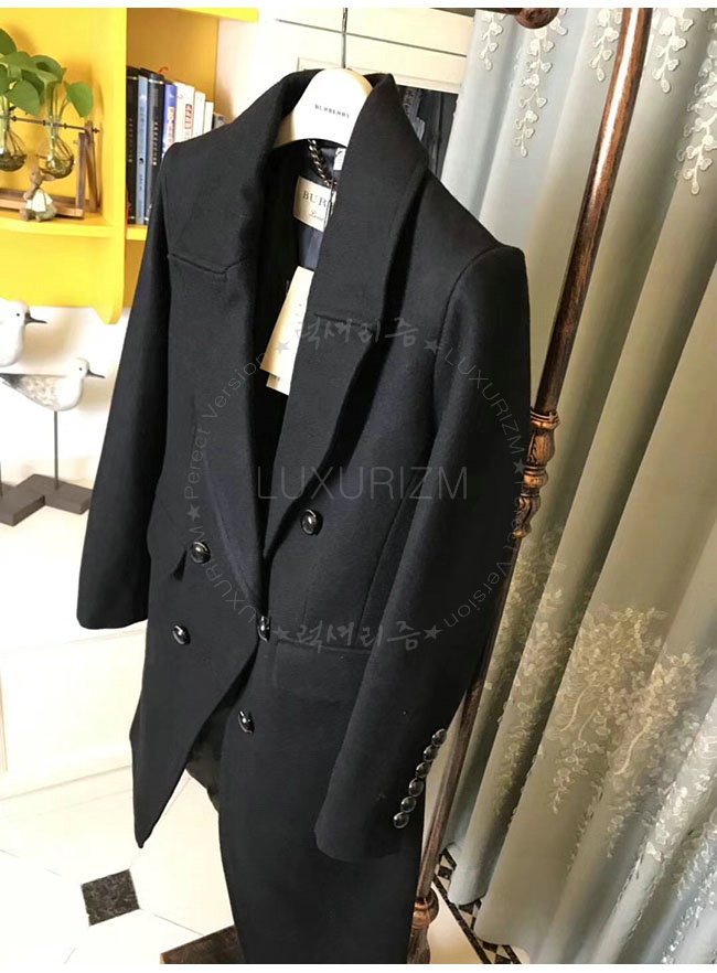 [스페셜오더]BURBERRY-40500271 버버리 블랙 울 블렌드 더블 브레스트 코트 여성용