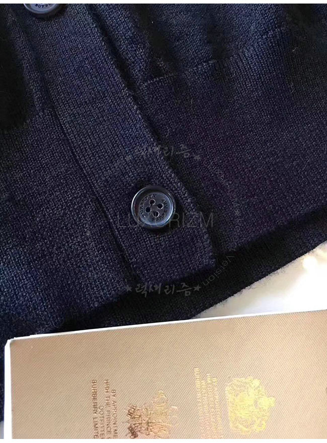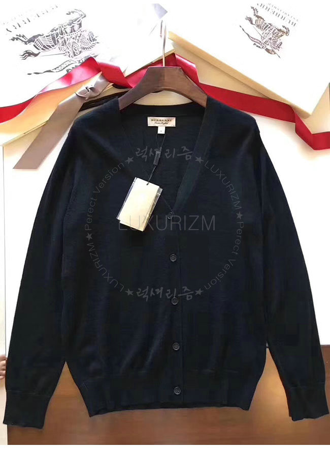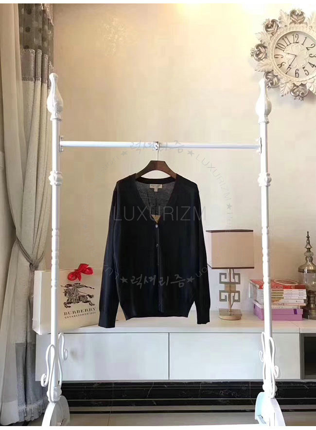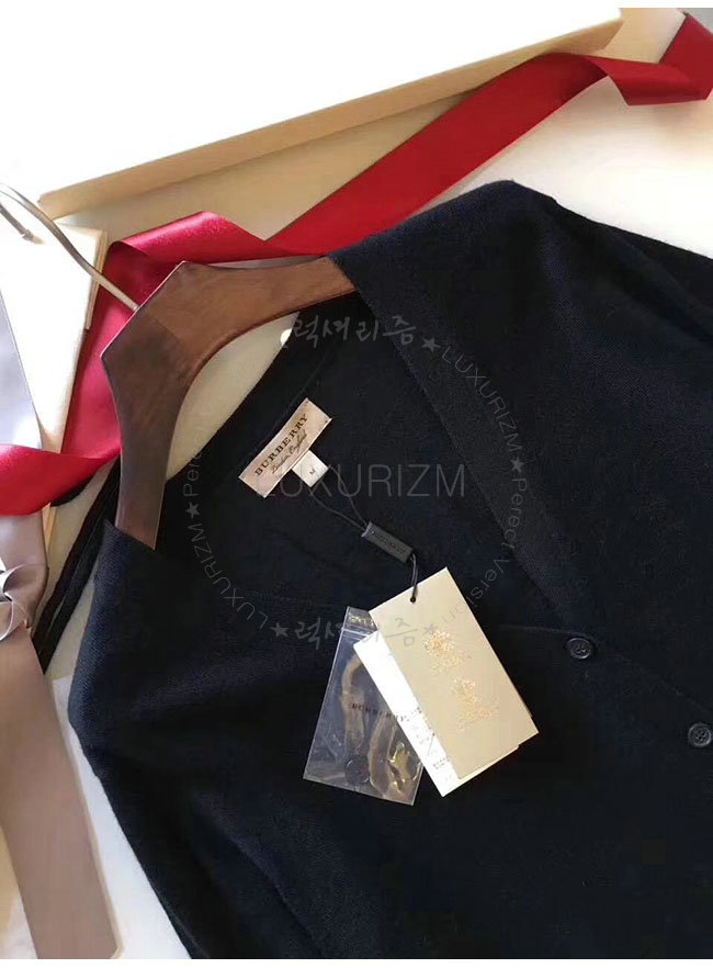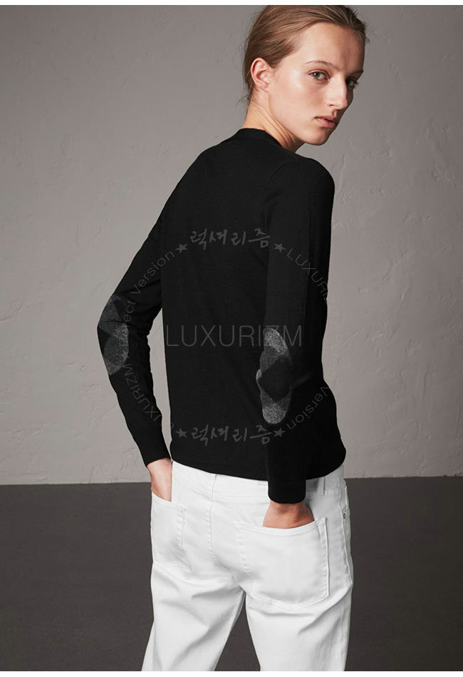 BURBERRY-40038411 버버리 블랙 체크 디테일 메리노 울 카디건 여성용