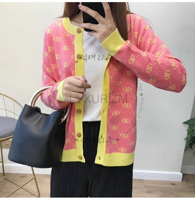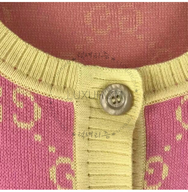 피치/옐로우 파인 울 GG 자카드 앞면 버튼 잠금장치 100% 울.