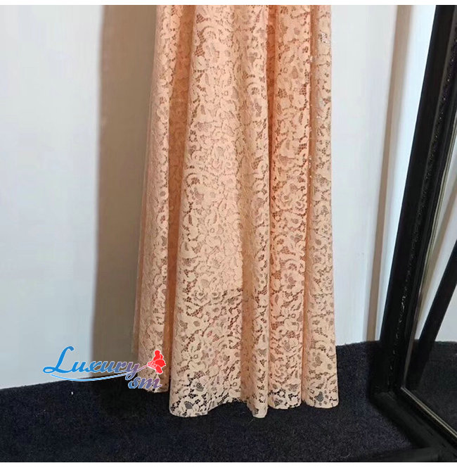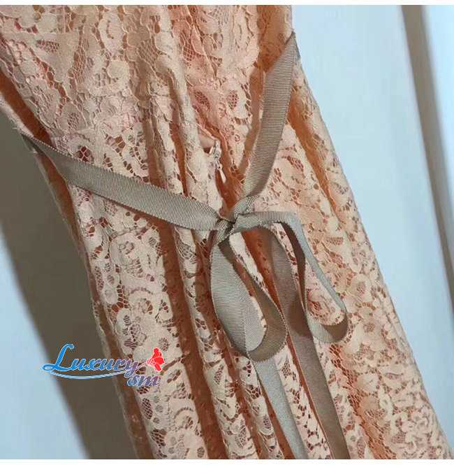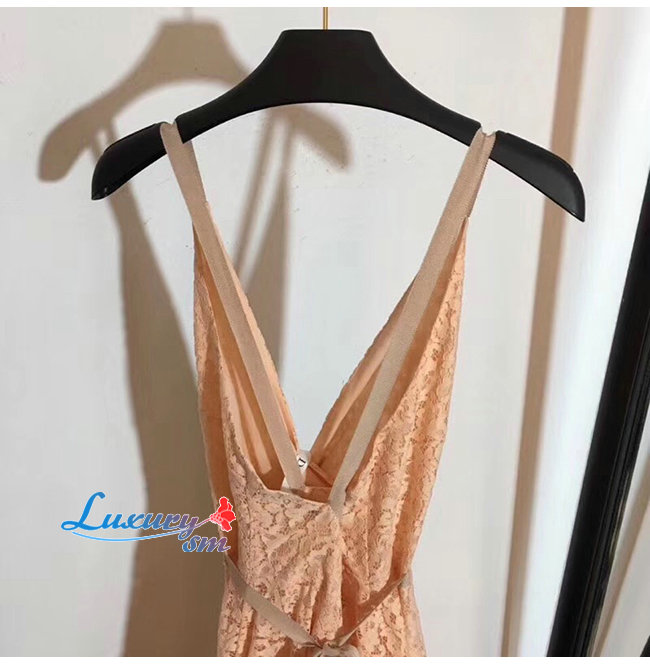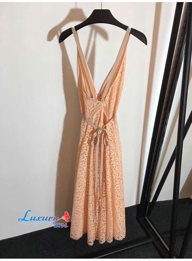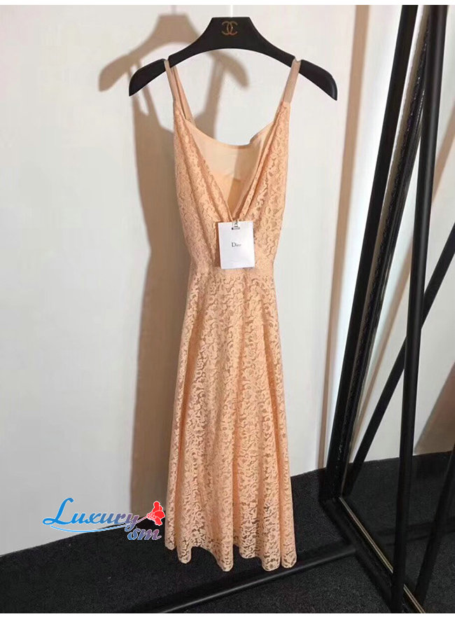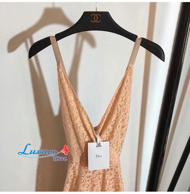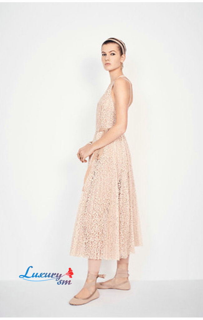 DIOR-921R10A 디올 핑크 코튼 레이스 플리츠 드레스
