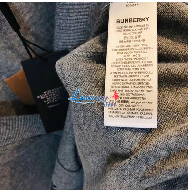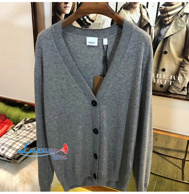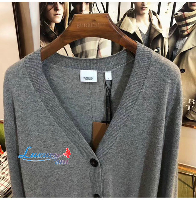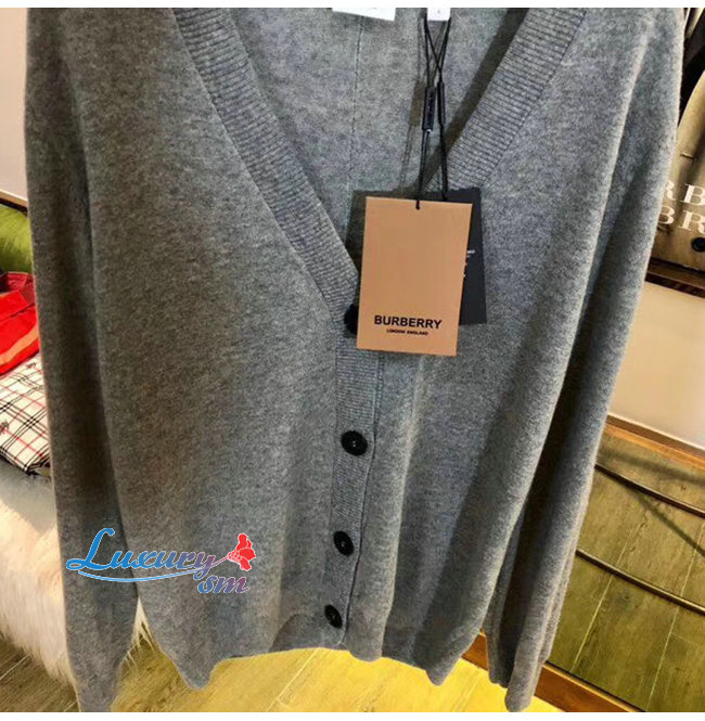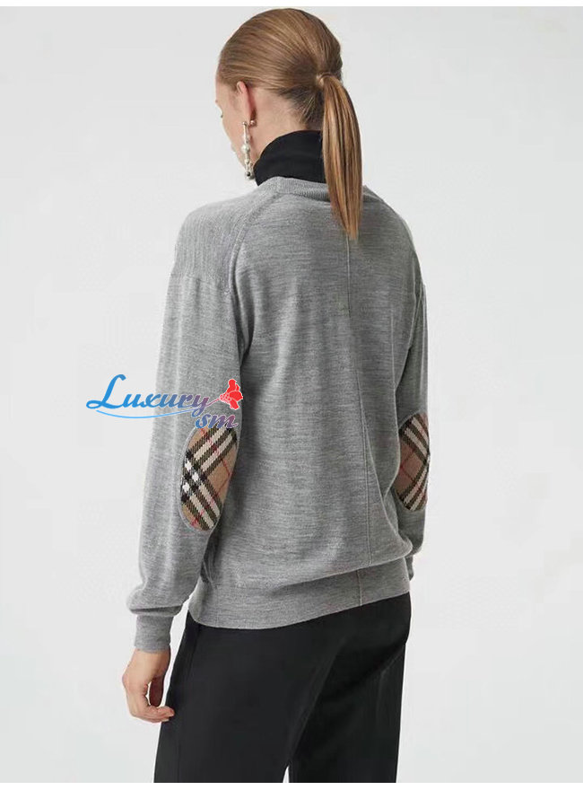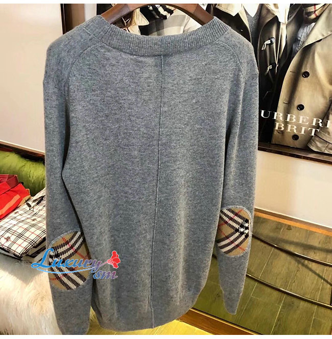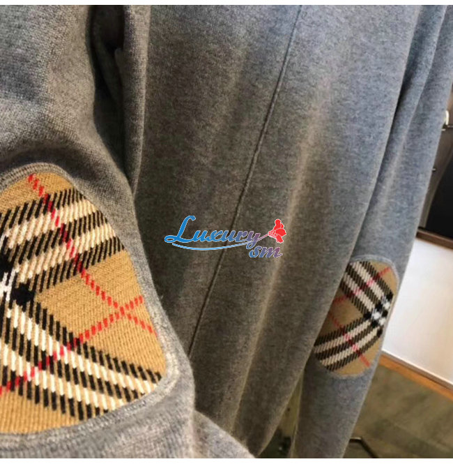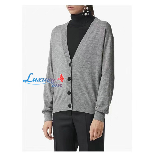 BURBERRY-80170121 버버리 그레이 빈티지 체크 디테일 메리노 울 카디건