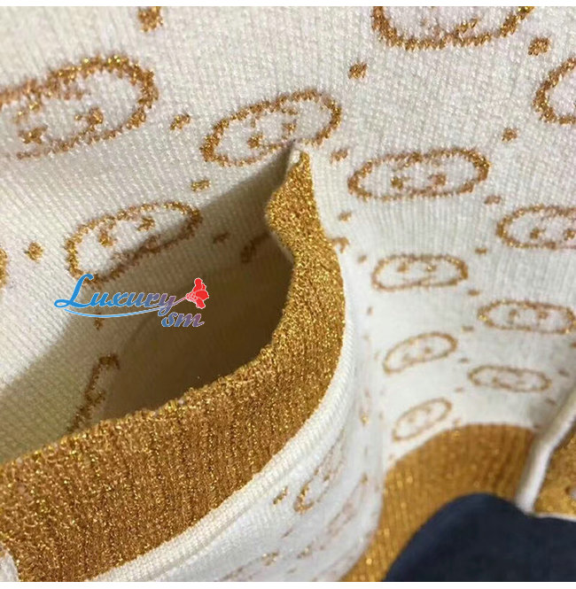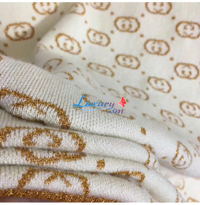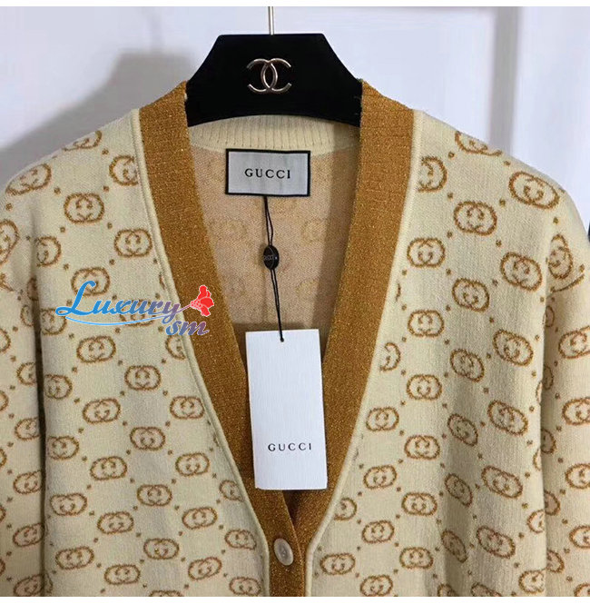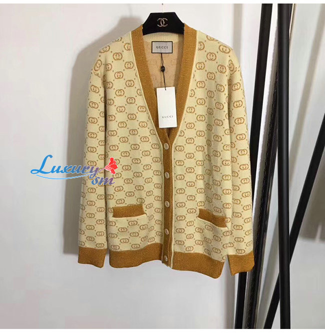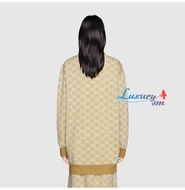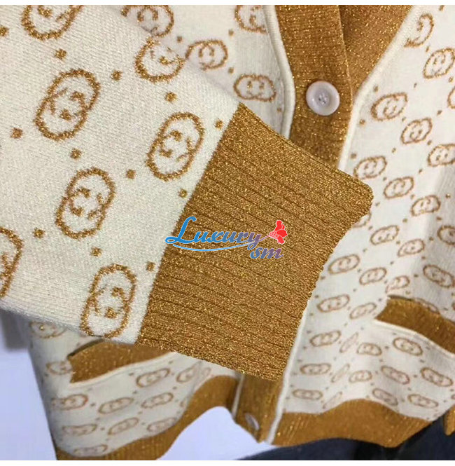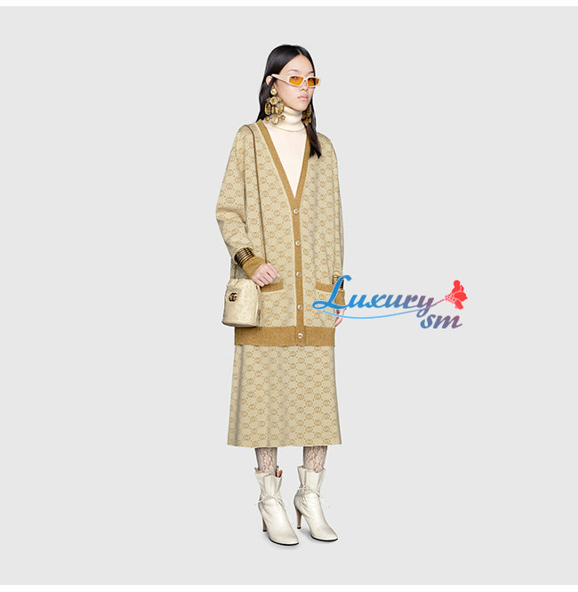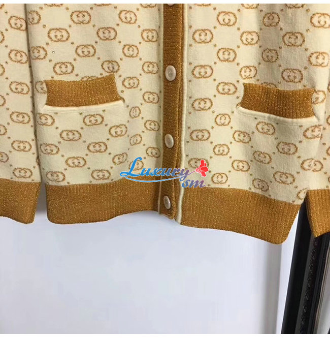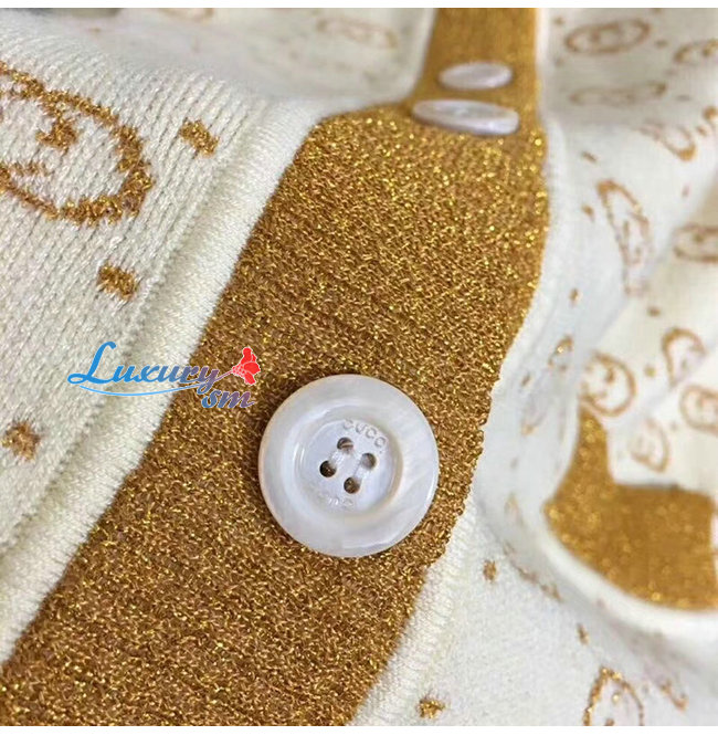 GUCCI-605910 8007 구찌 크림/골드 인터로킹 G 라메 울 가디건