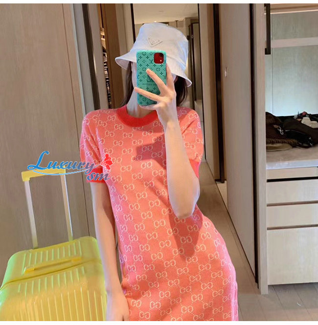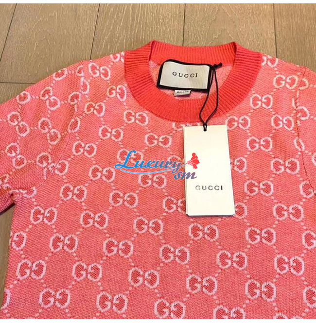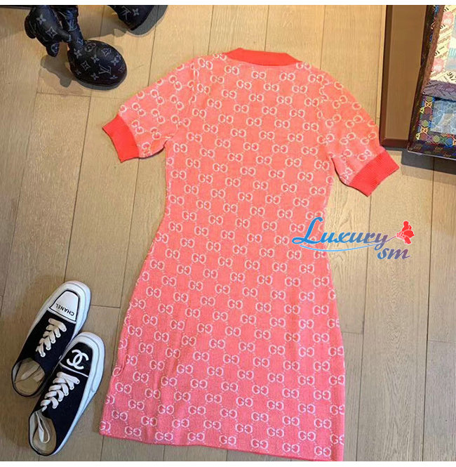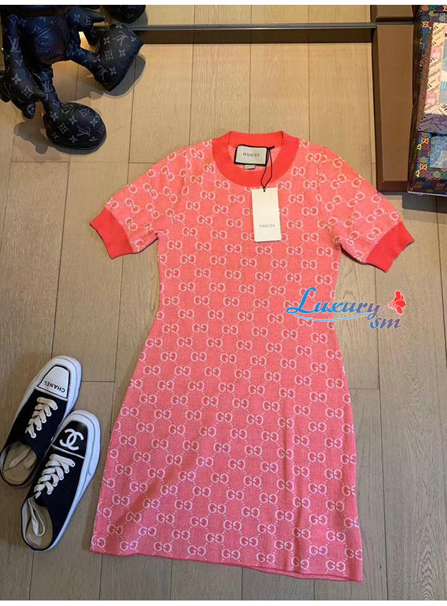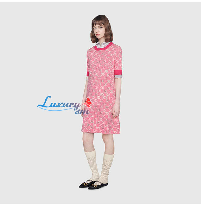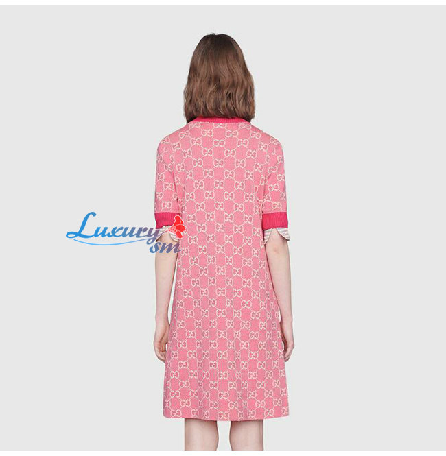 GUCCI-629464 5016 구찌 핑크 GG 코튼 울 피케 숏 드레스