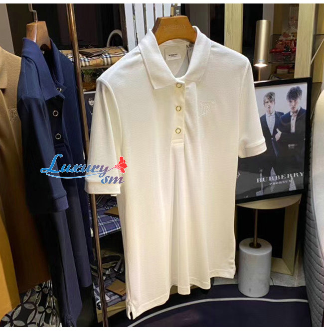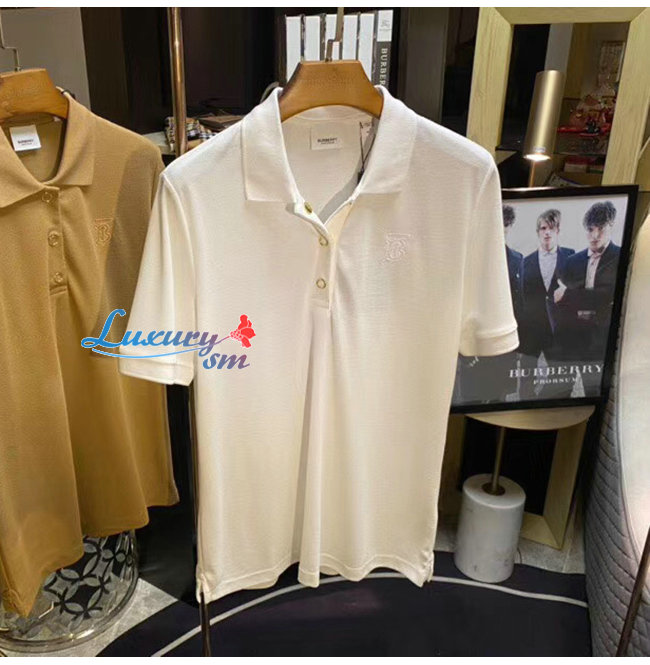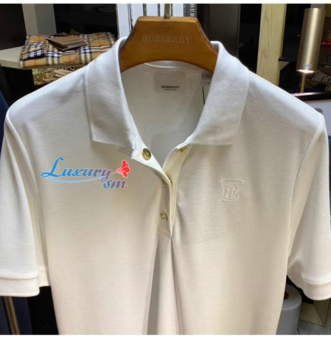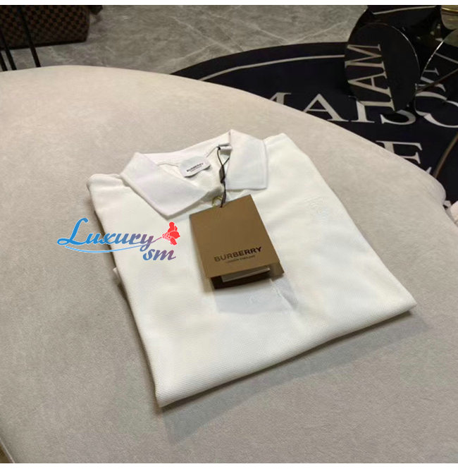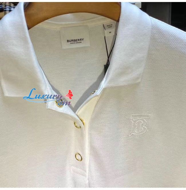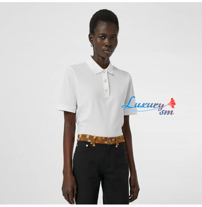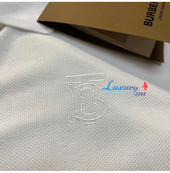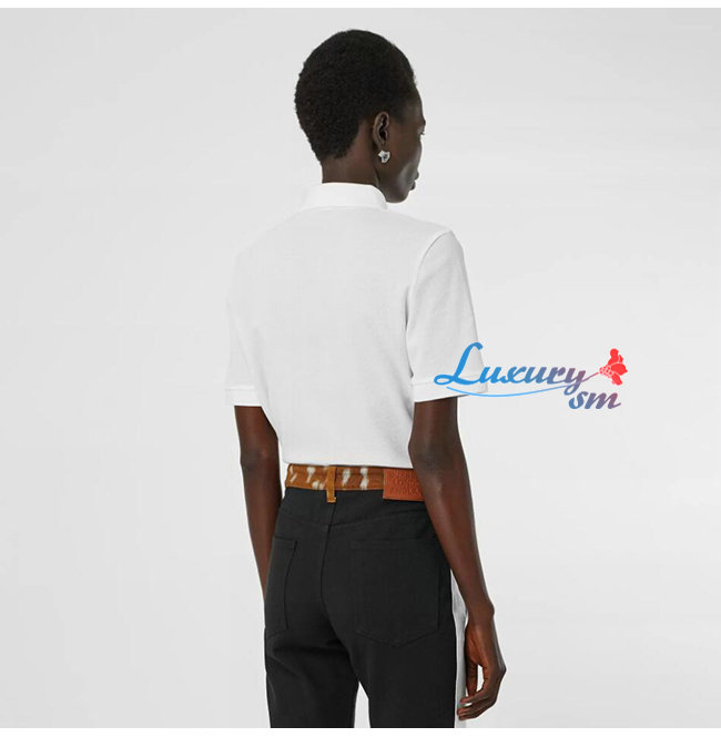 BURBERRY-80171531 버버리 화이트 모노그램 모티프 코튼 피케 폴로셔츠