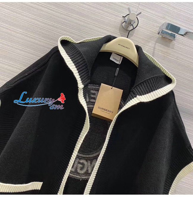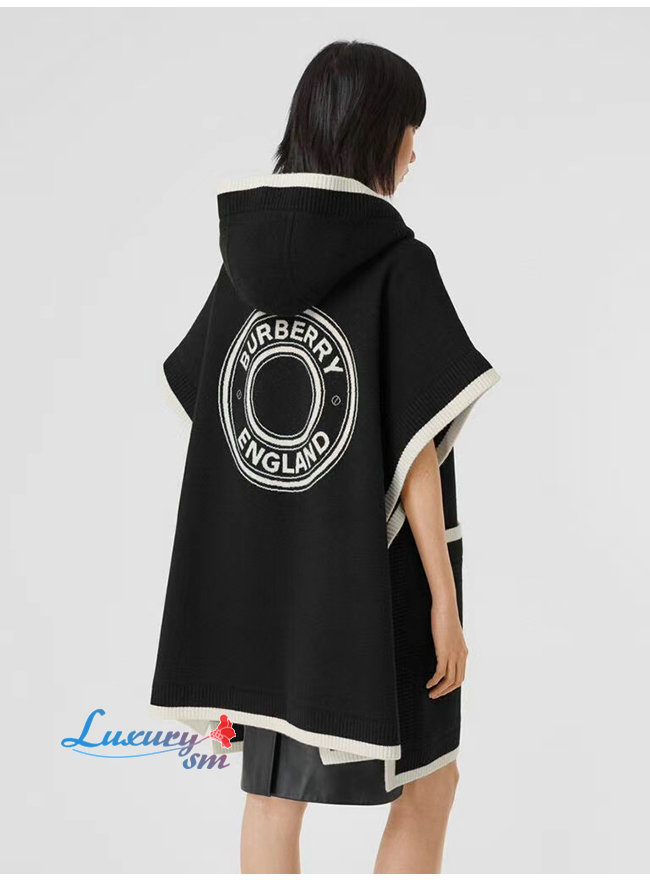 BURBERRY-80315441 버버리 블랙 로고 그래픽 울 캐시미어 자카드 후드 케이프