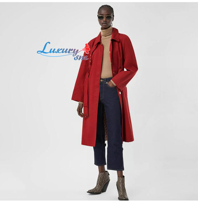[스페셜오더]BURBERRY-80306381 버버리 레드 트로피컬 개버딘 벨트 카 코트