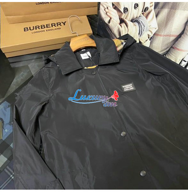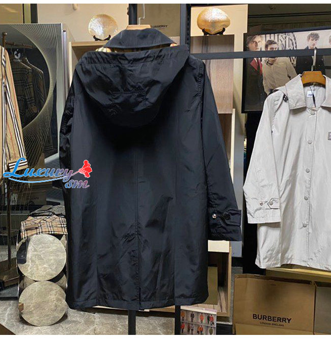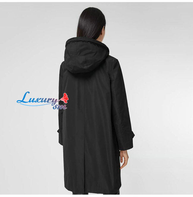BURBERRY-80227311 버버리 블랙 디태처블 후드 쉐이프 메모리 태피터 카 코트