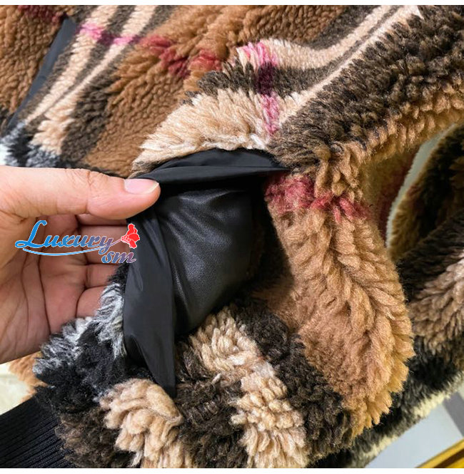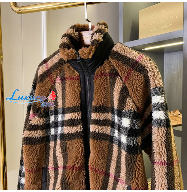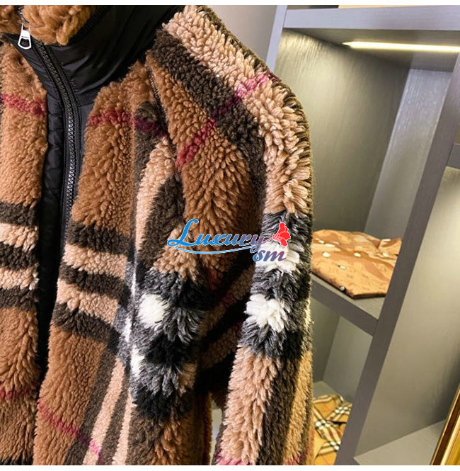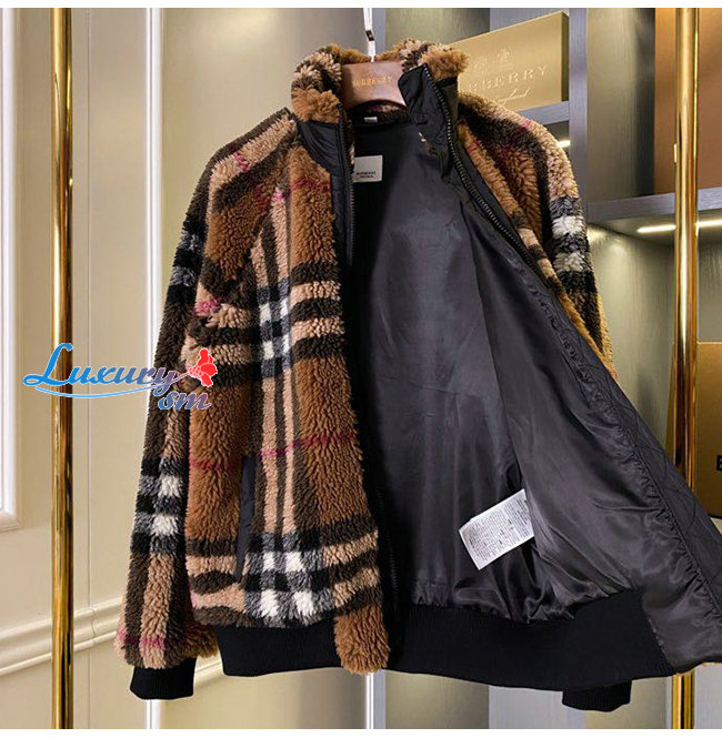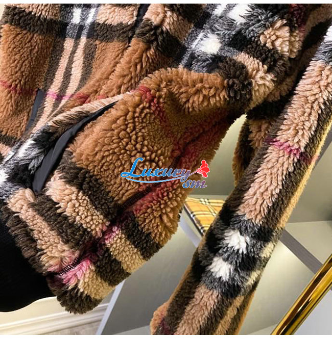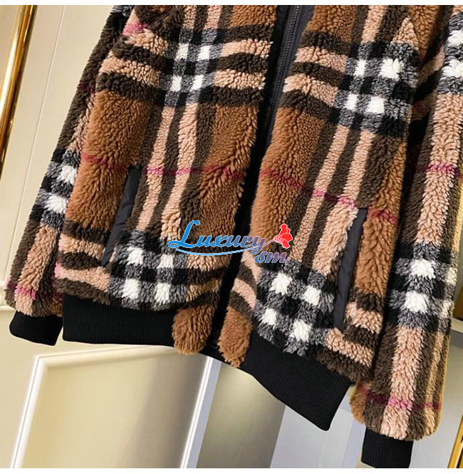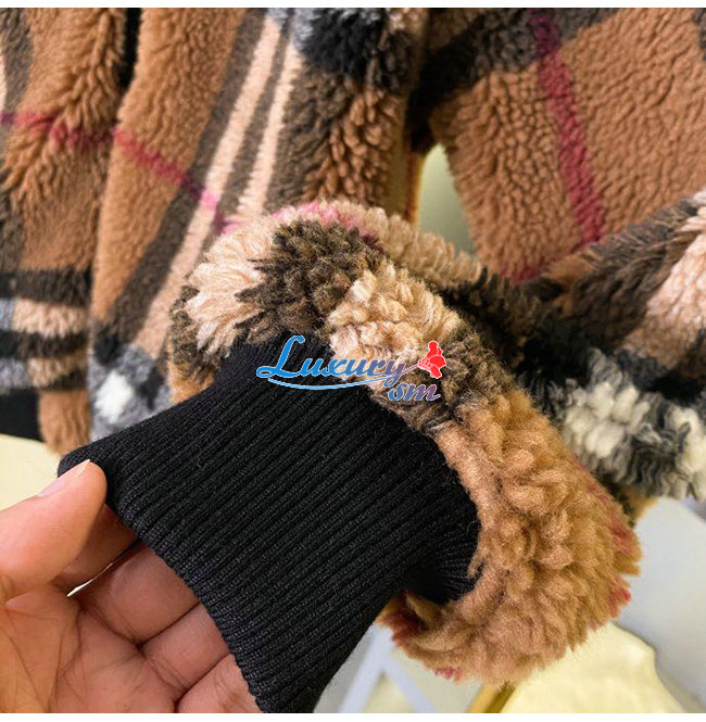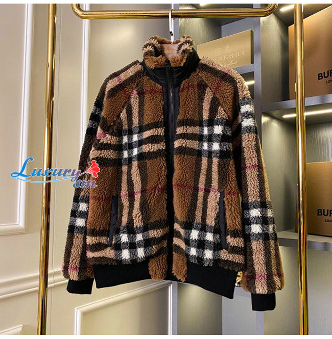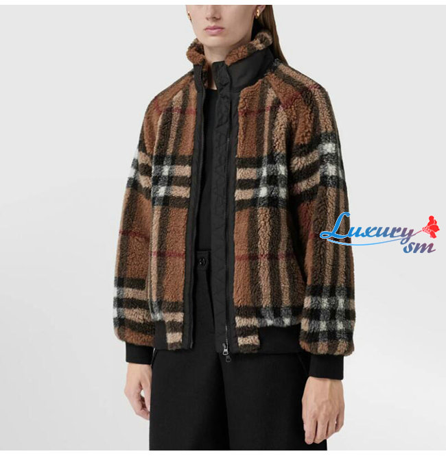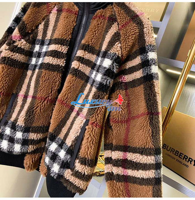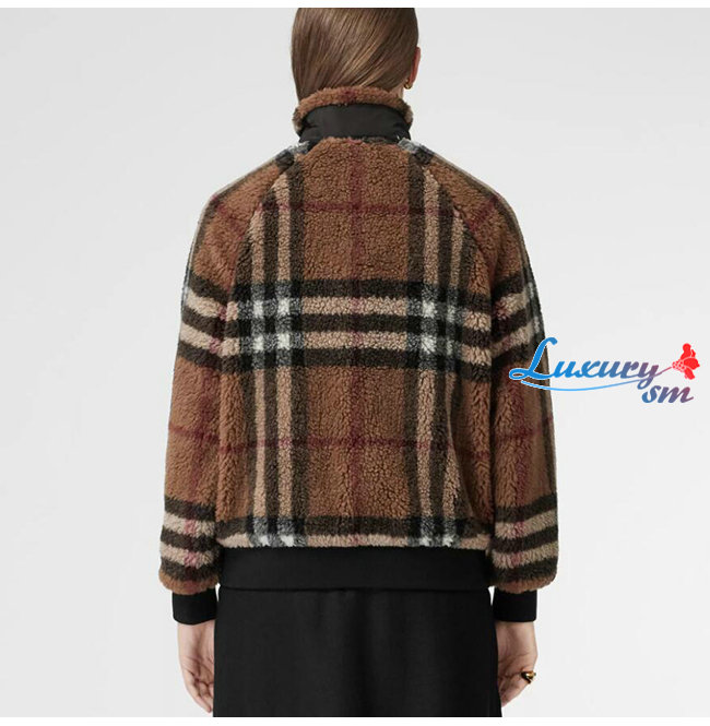 BURBERRY-80444121 버버리 버치 브라운 체크 울 캐시미어 블렌드 플리스 재킷