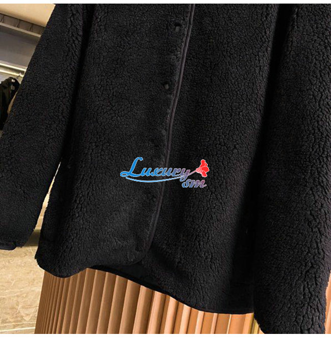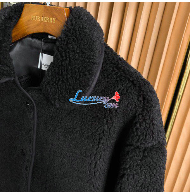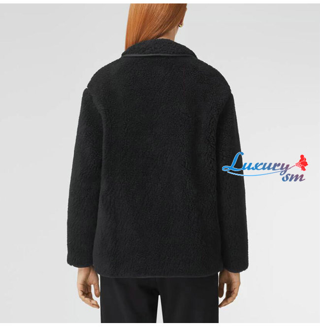 BURBERRY-80462691 버버리 블랙 울 캐시미어 블렌드 플리스 재킷