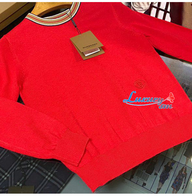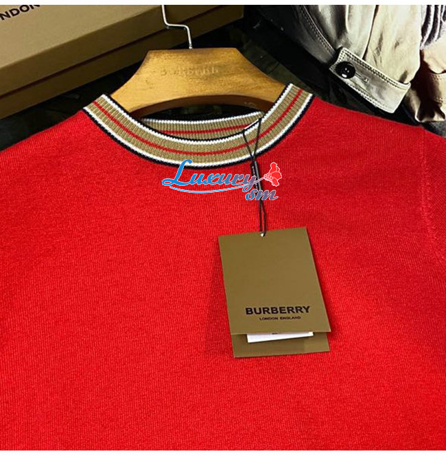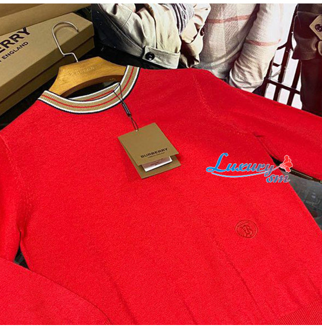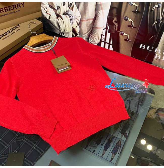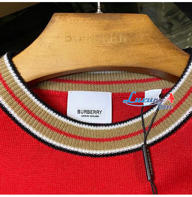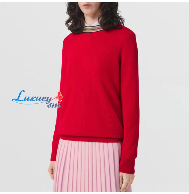 BURBERRY-80488321 버버리 레드 스트라이프 디테일 캐시미어 스웨터