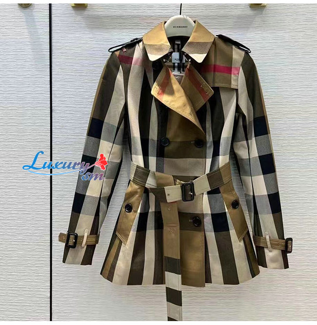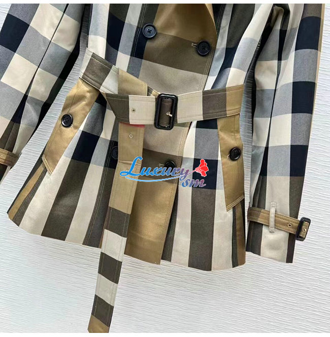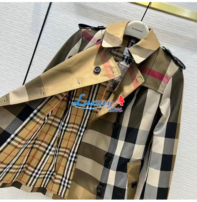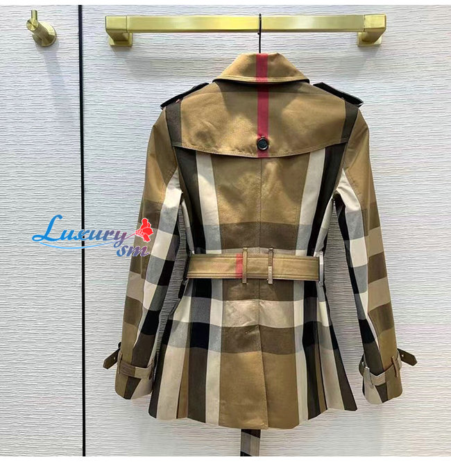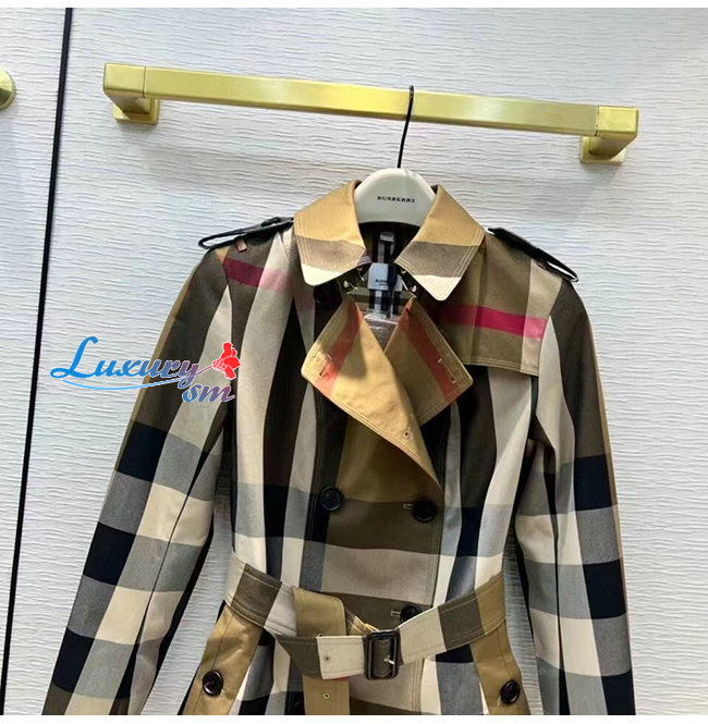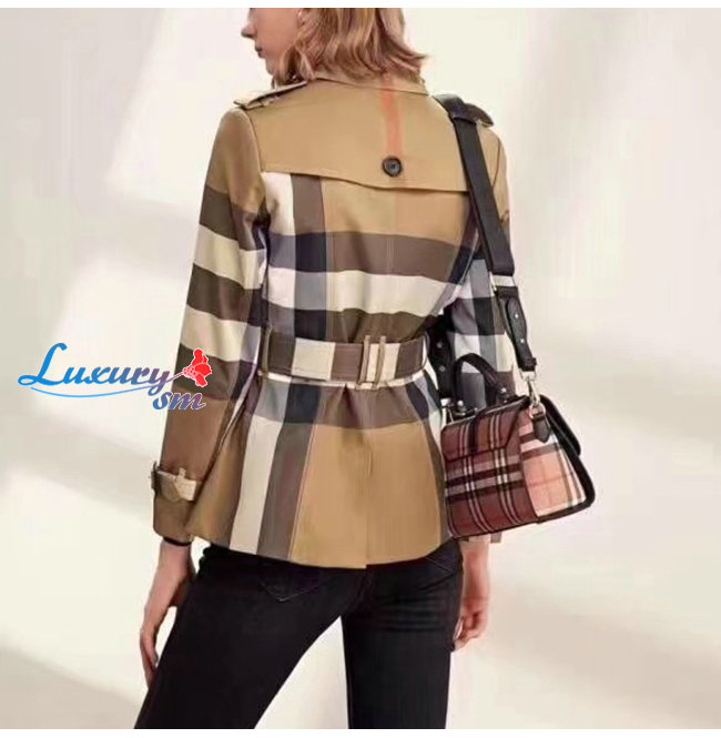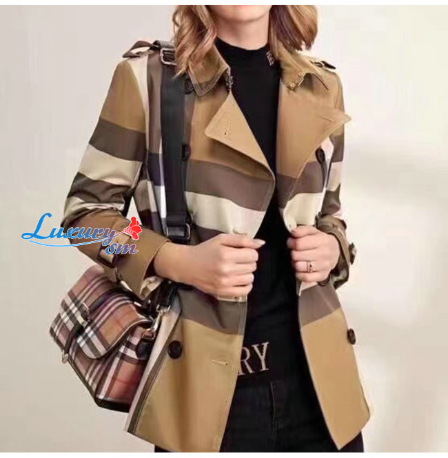 BURBER**-022512 버버리 베이지 코튼 체크 무늬 트렌치재킷 여성용