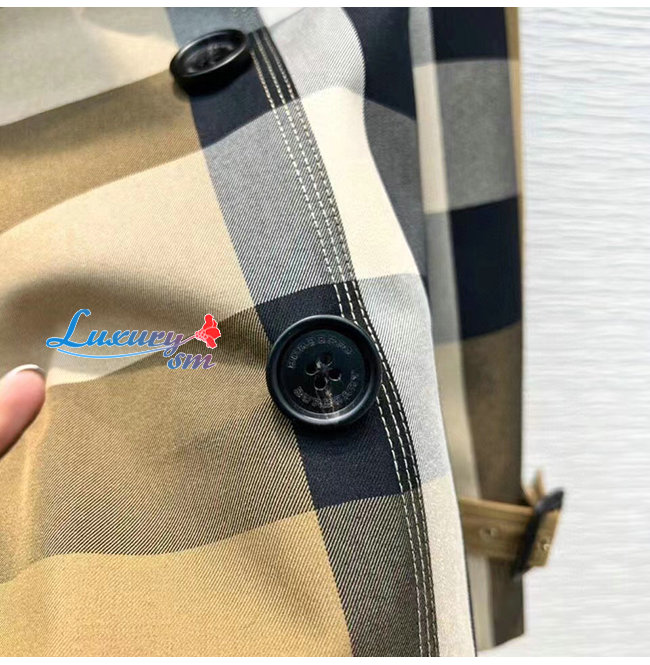 BURBER**-022513 버버리 베이지 코튼 체크 무늬 트렌치코트 여성용