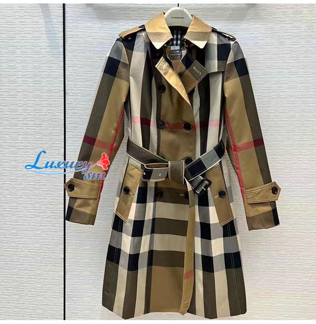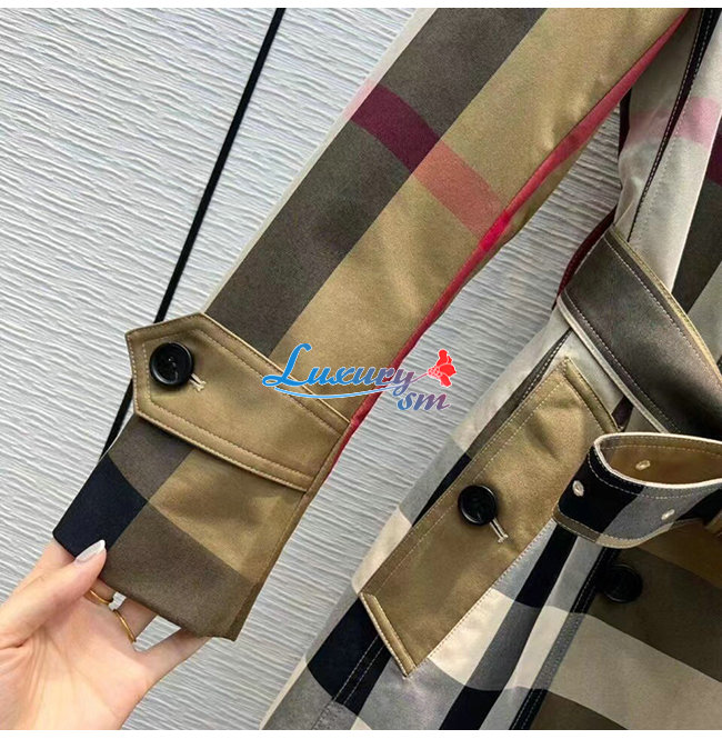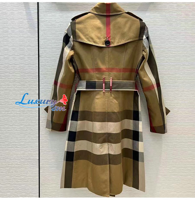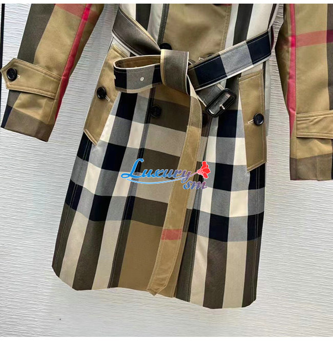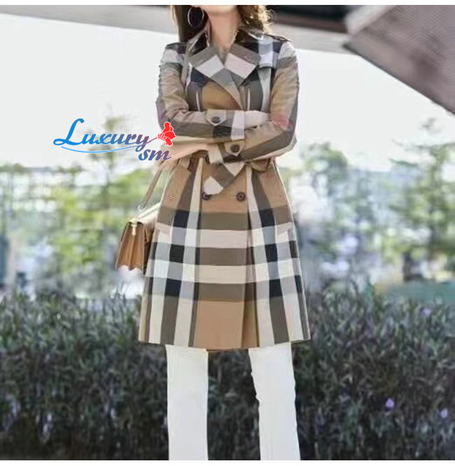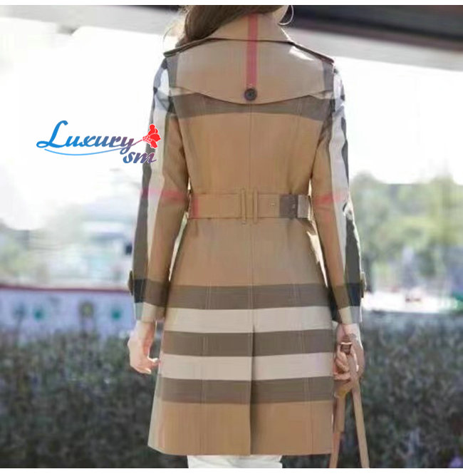 BURBER**-022513 버버리 베이지 코튼 체크 무늬 트렌치코트 여성용