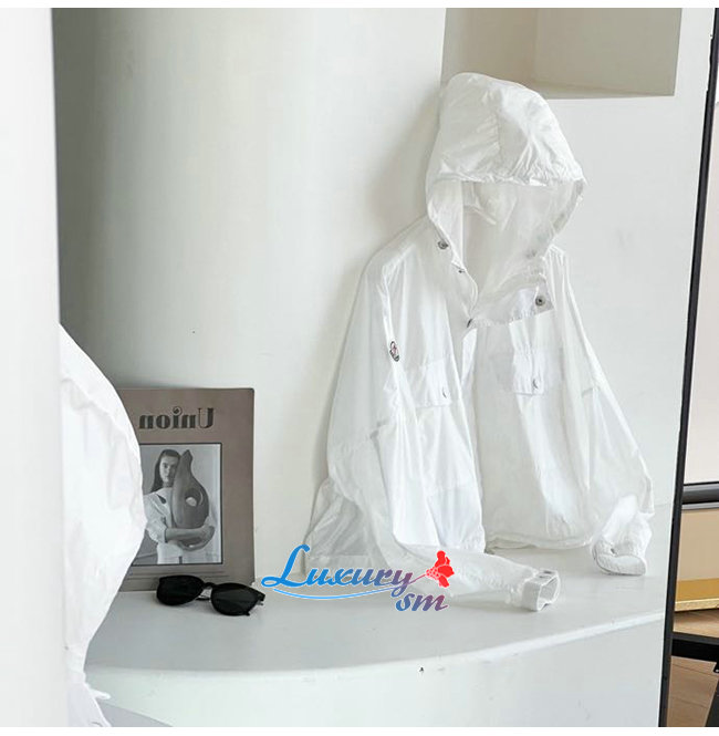MONCLER-07059 몽클레어 화이트 나일론 바람막이 후드 재킷 여성용