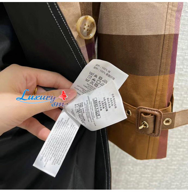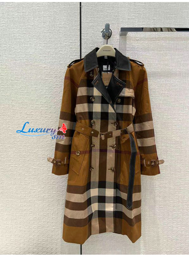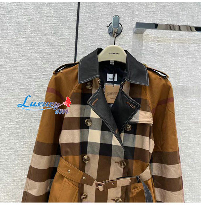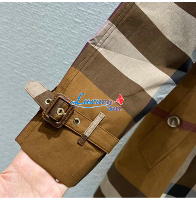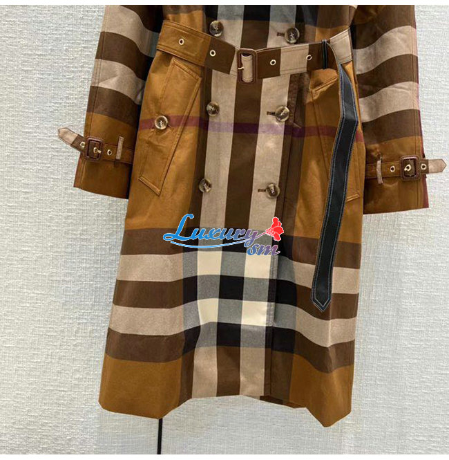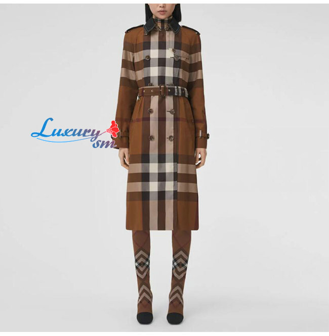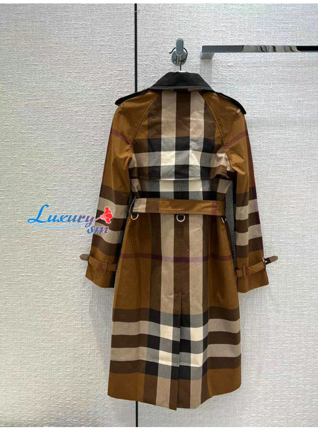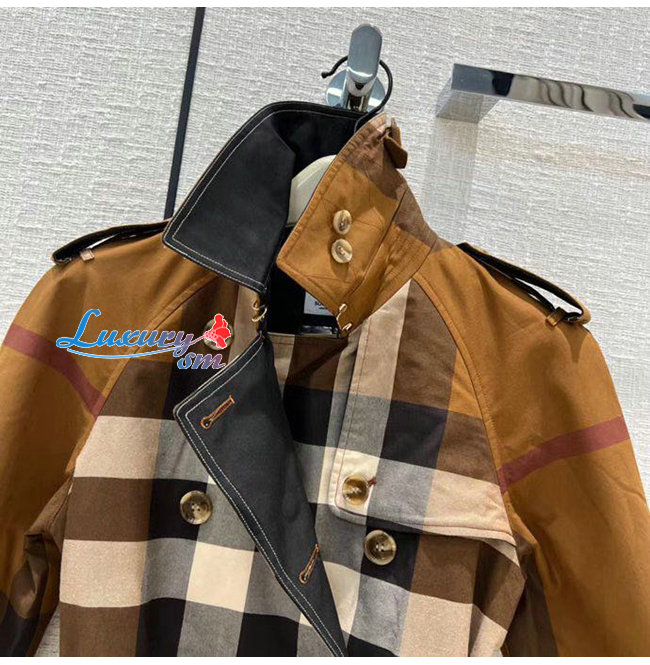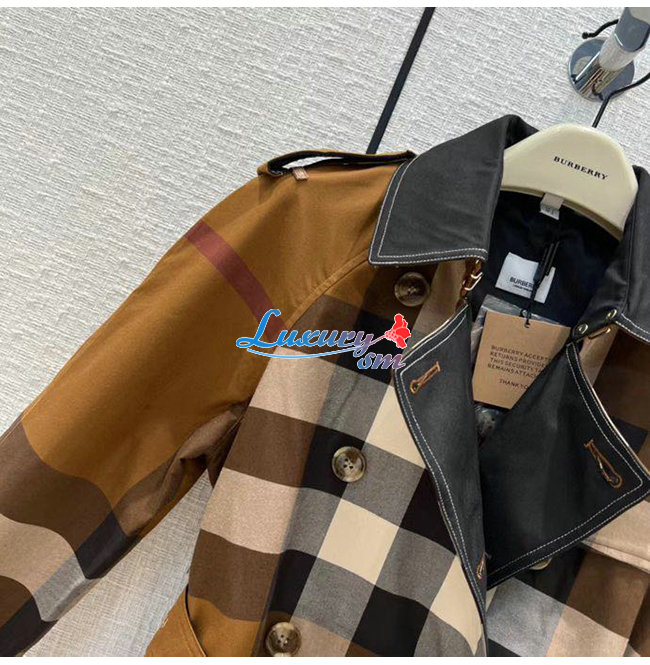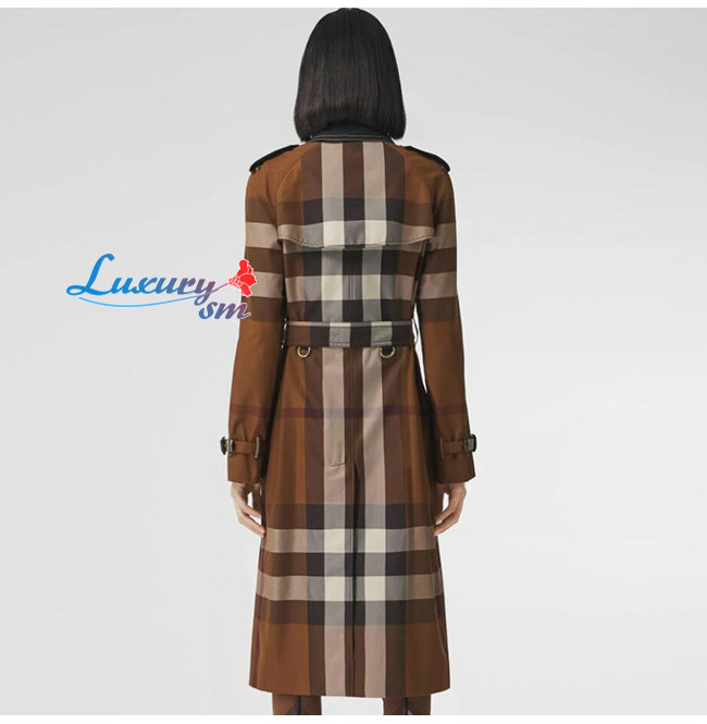 BURBERRY-80486961 버버리 다크 버치 브라운 컨트라스트 패널 체크 코튼 트렌치코트