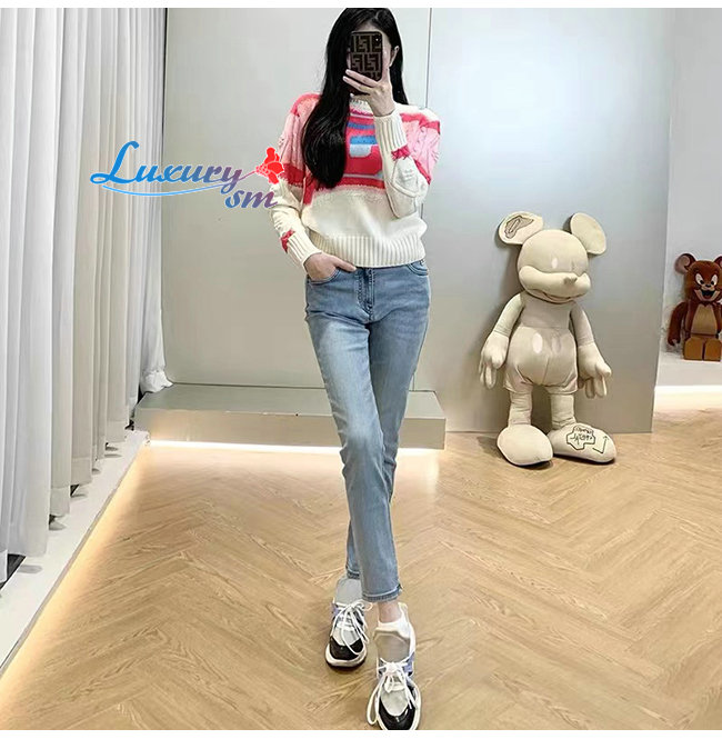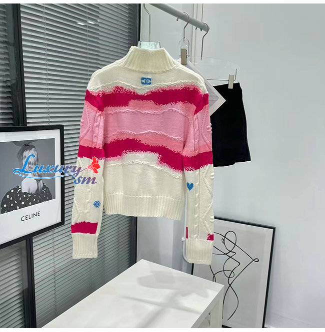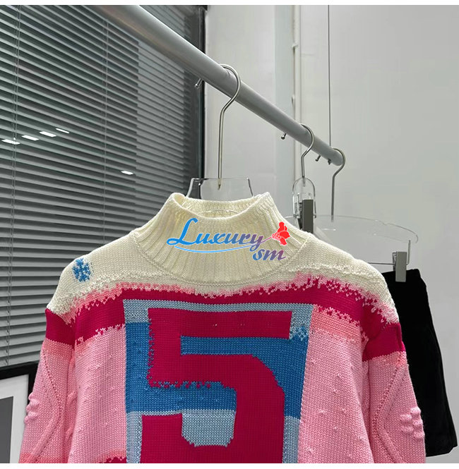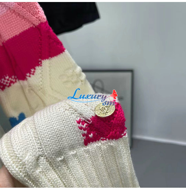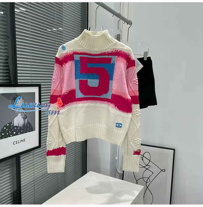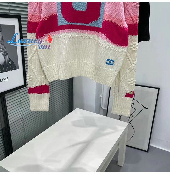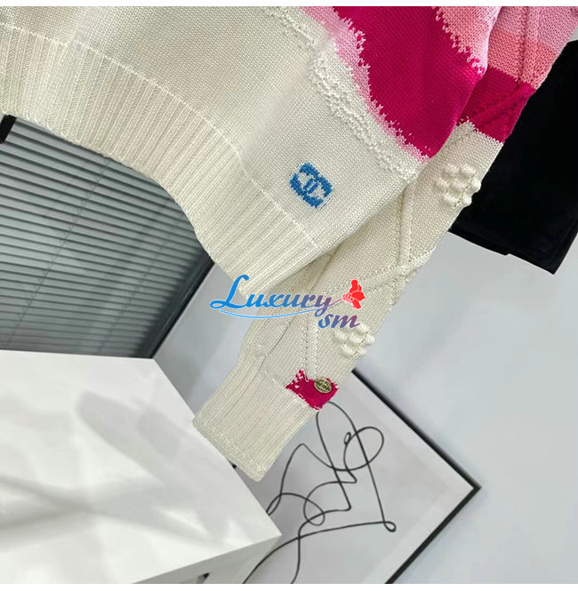 CHANEL-10181 샤넬 화이트/핑크 니트 코튼 스웨터 여성용