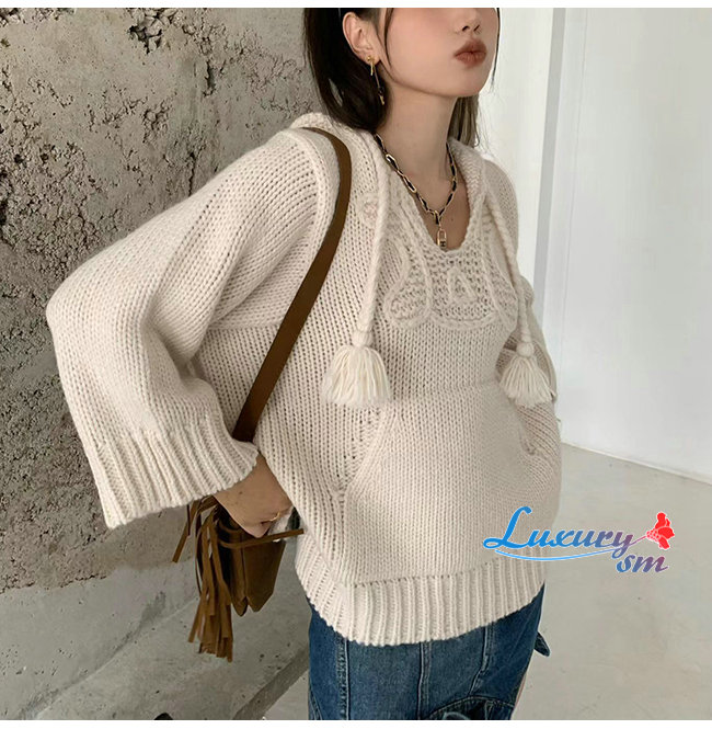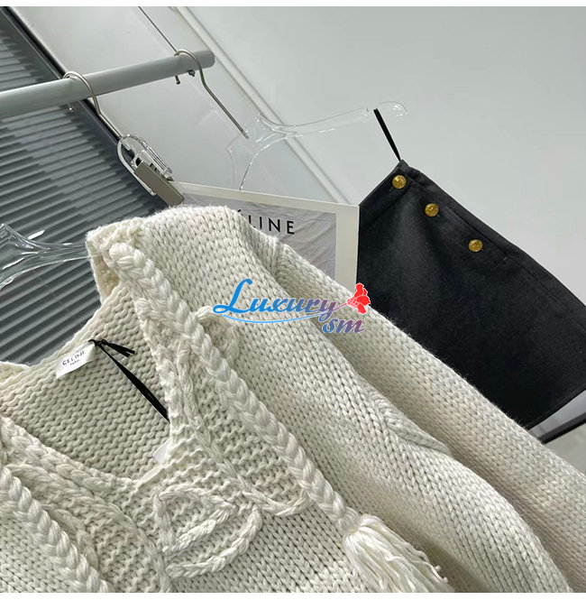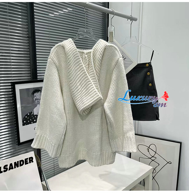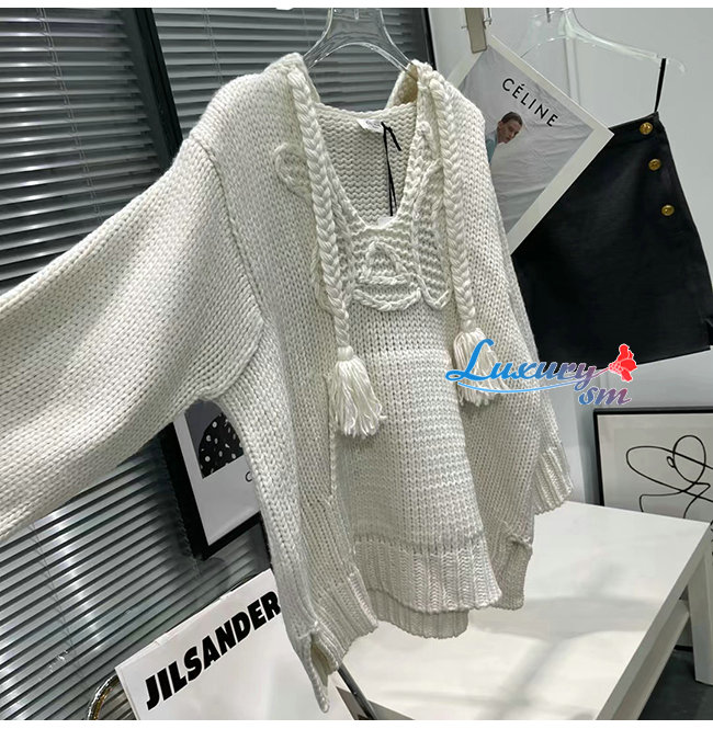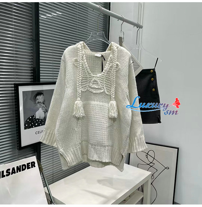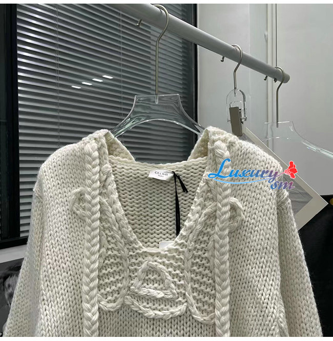 CELINE-10198 셀린느 화이트 니트 코튼 후드 스웨터 여성용