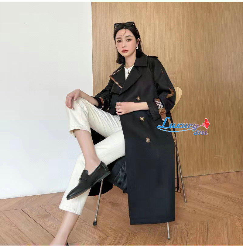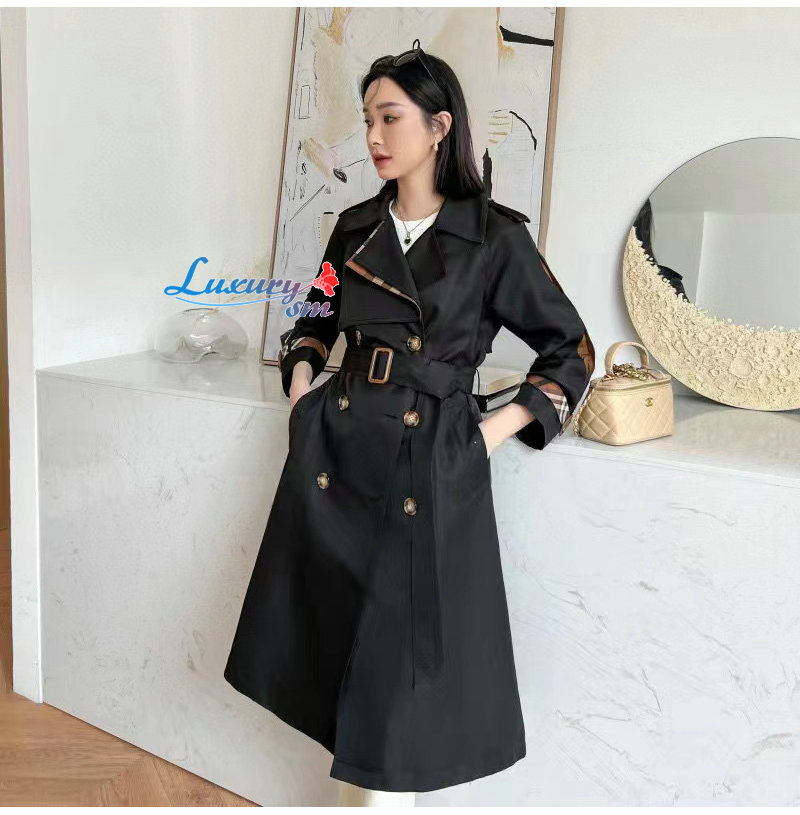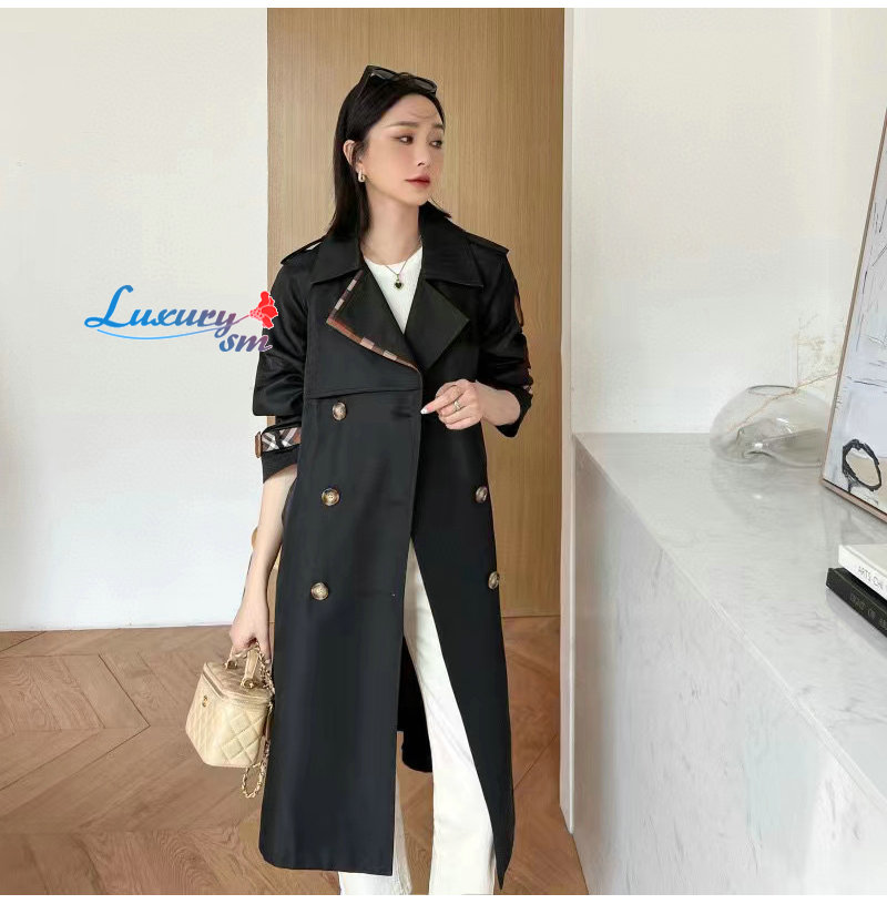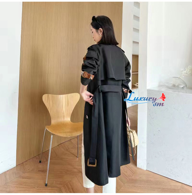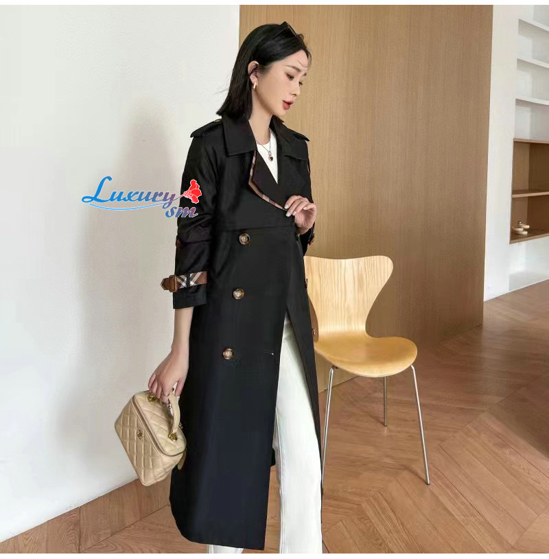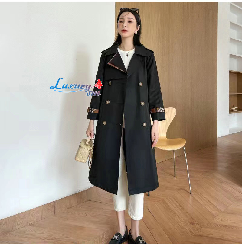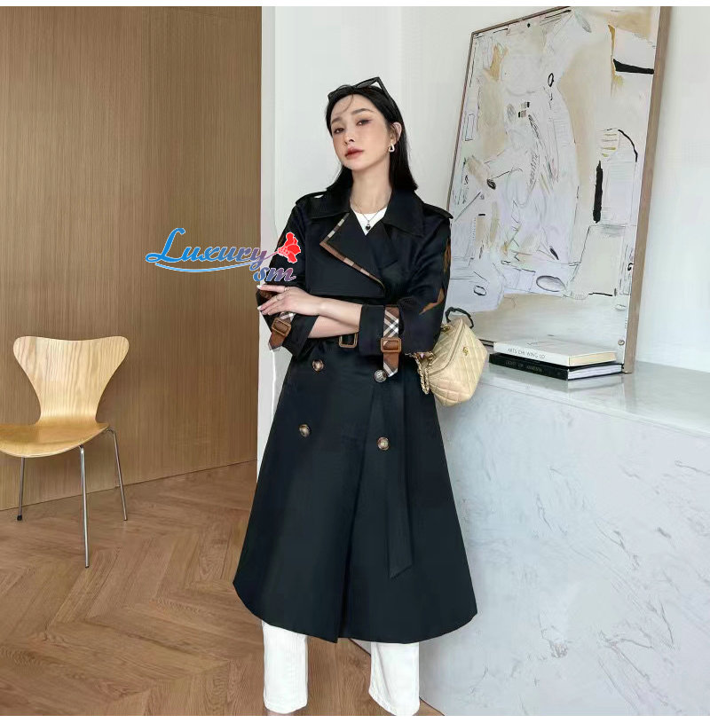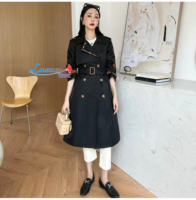 BURBERRY-02163 버버리 블랙 체크 트리밍 트렌치코트 여성용