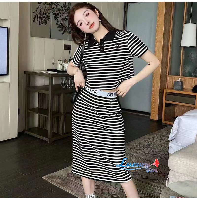 CELINE-02288 셀린느 블랙 스트라이프 장식 투피스