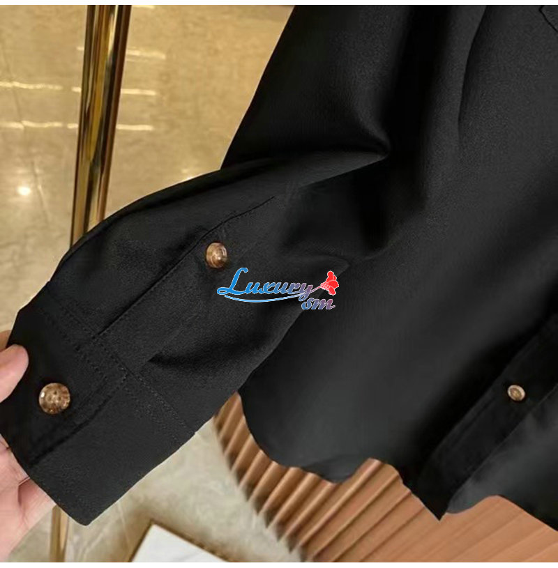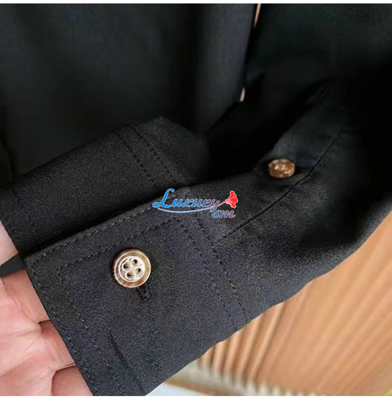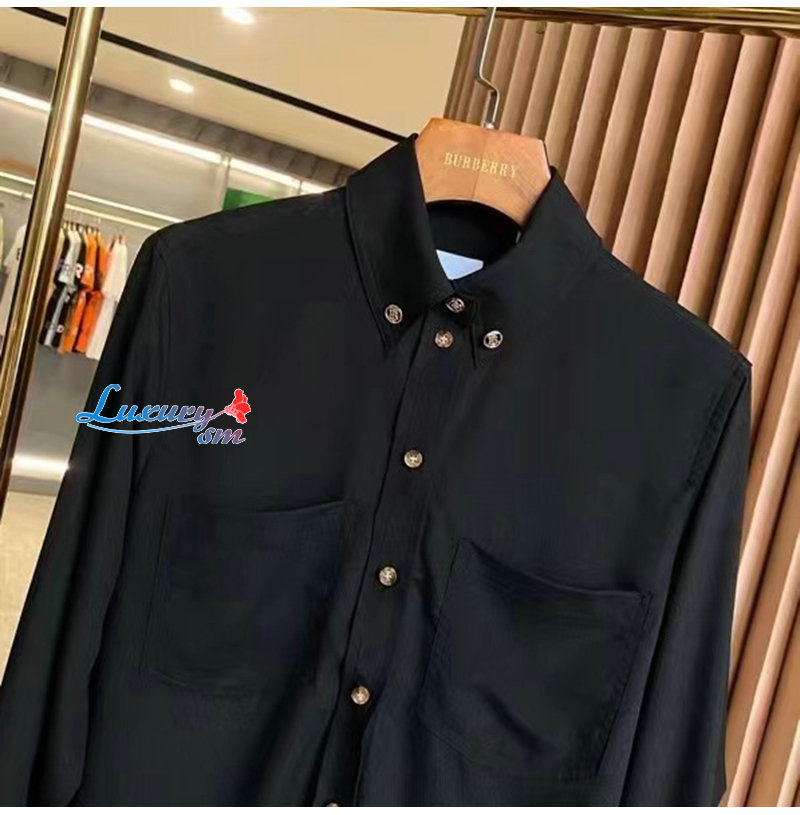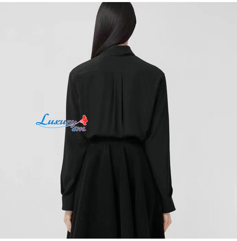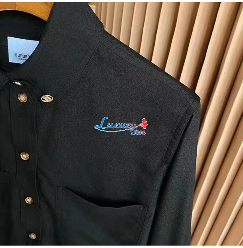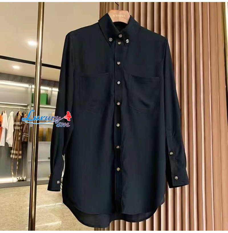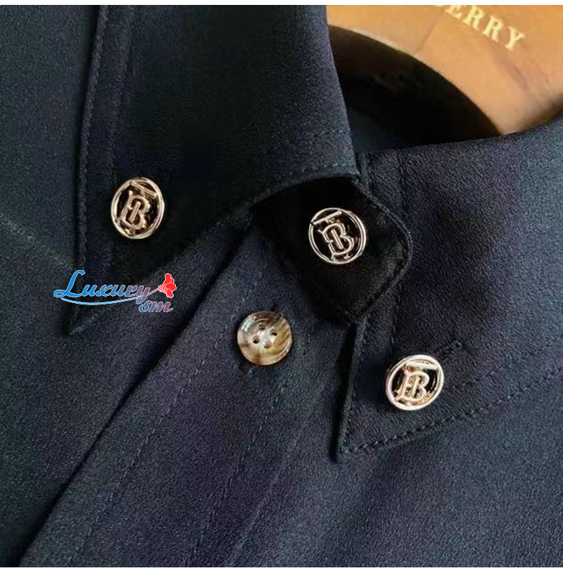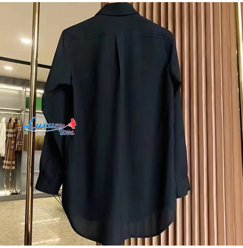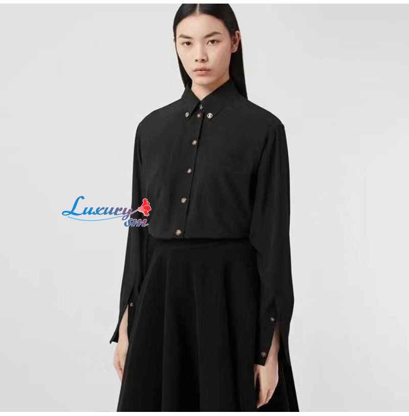 BURBERRY-80554461 버버리 블랙 모노그램 모티프 실크 셔츠 여성용