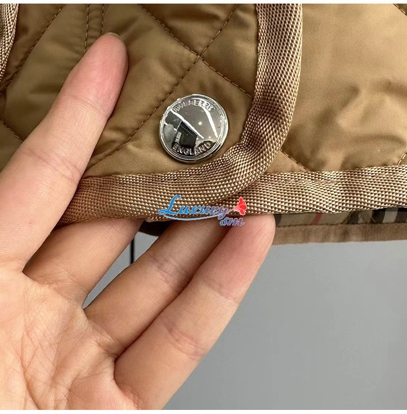 BURBERRY-80709691 버버리 베이지 다이아몬드 퀼팅 나일론 크롭 재킷 여성용