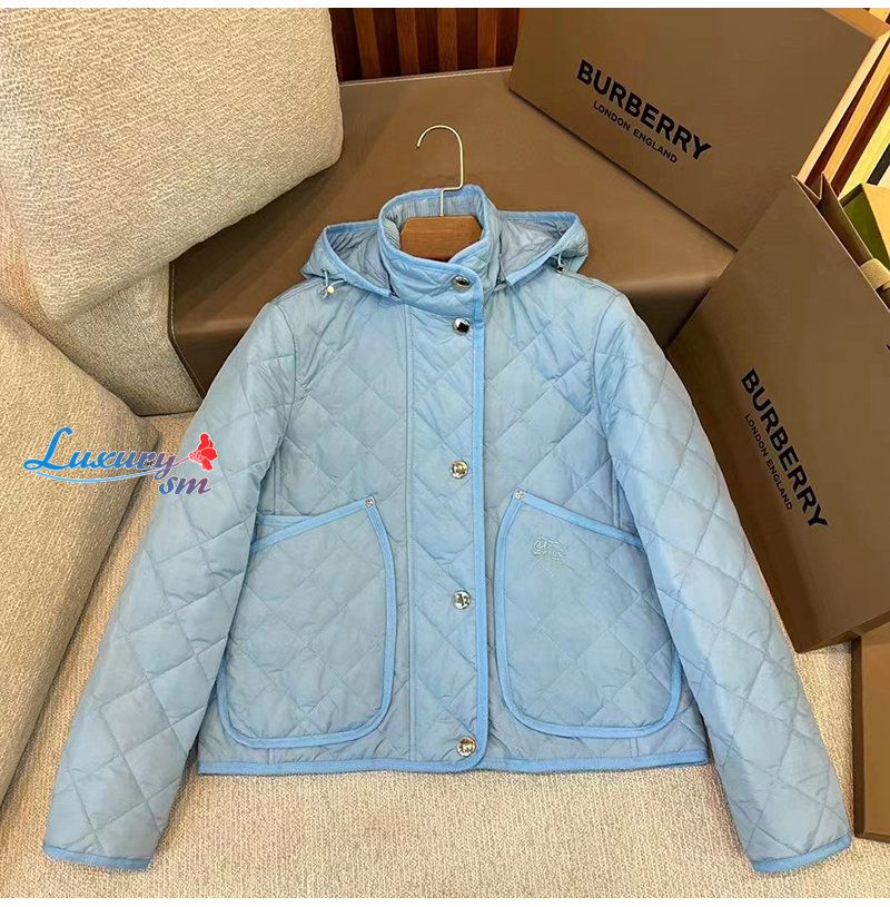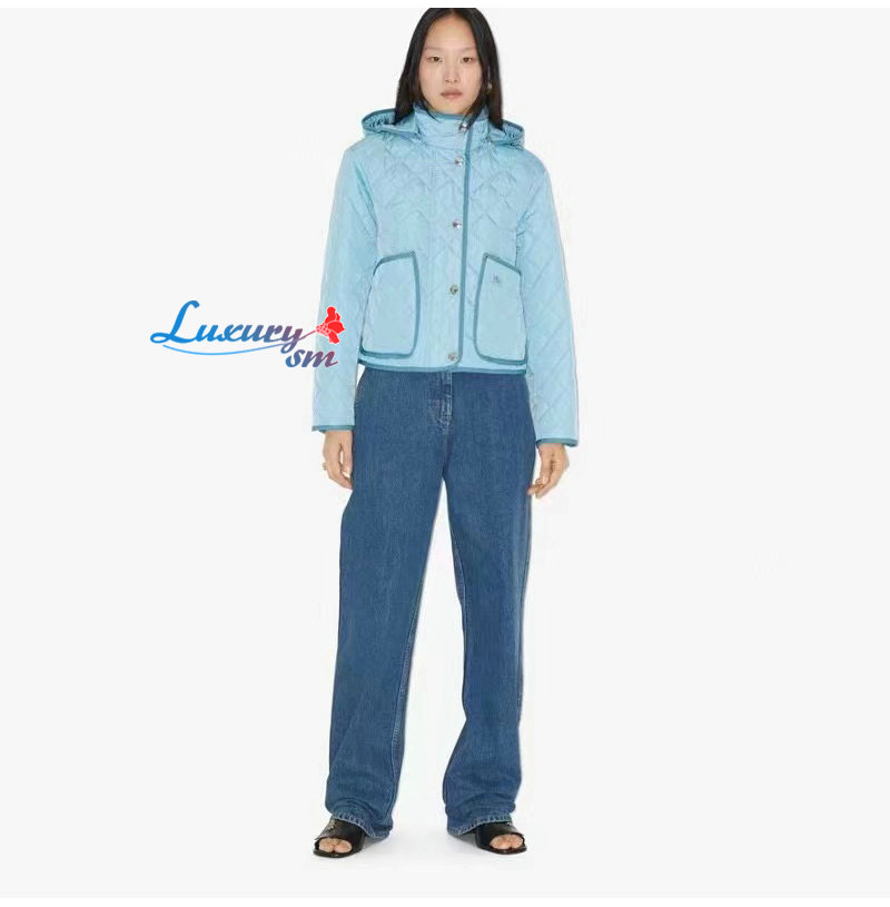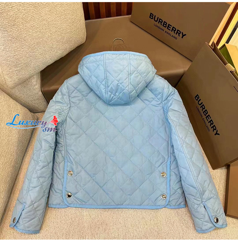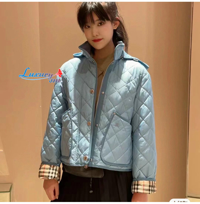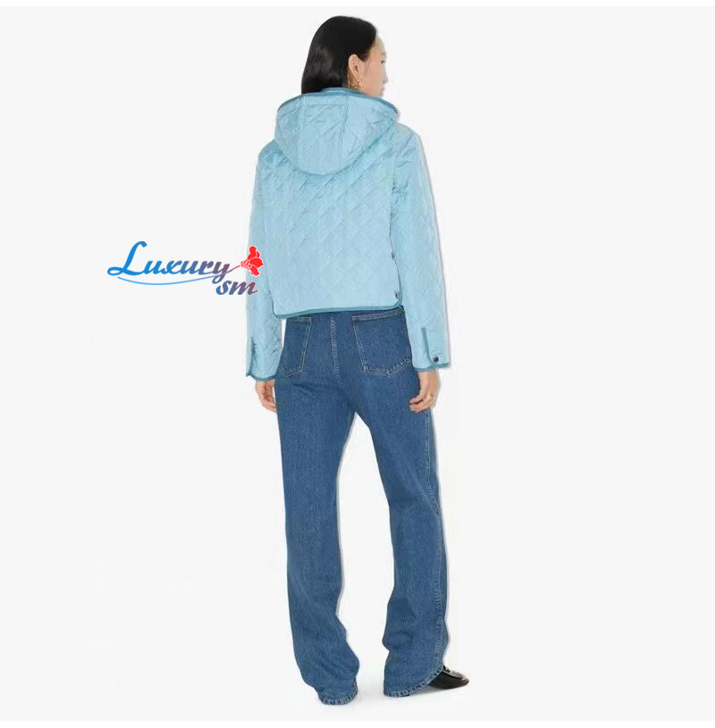 BURBERRY-80727991 버버리 블루 다이아몬드 퀼팅 나일론 크롭 재킷 여성용