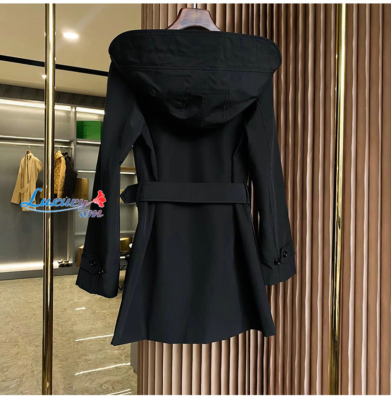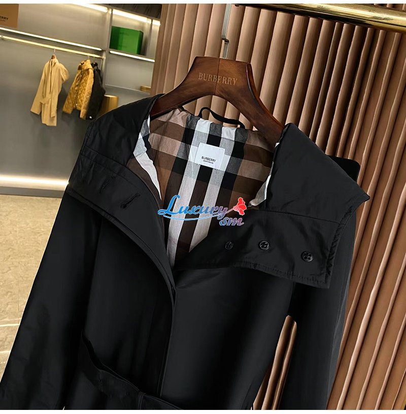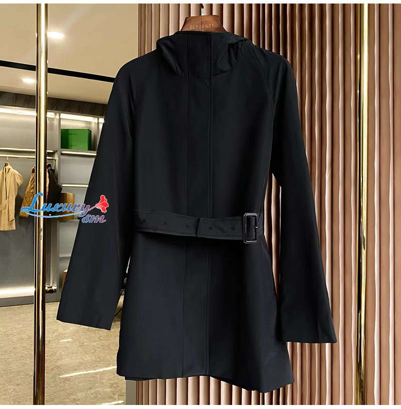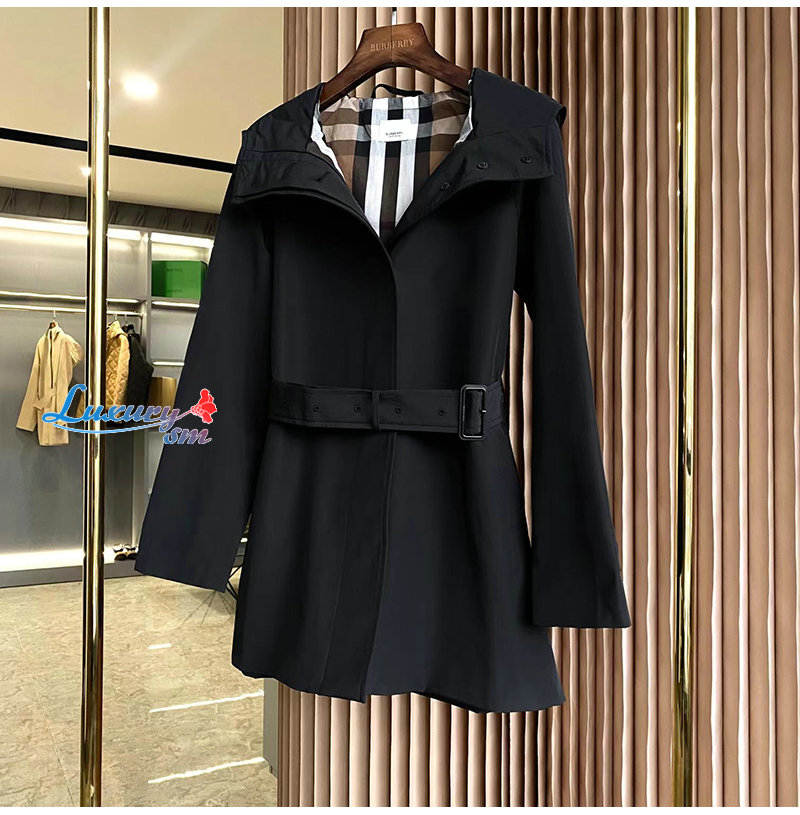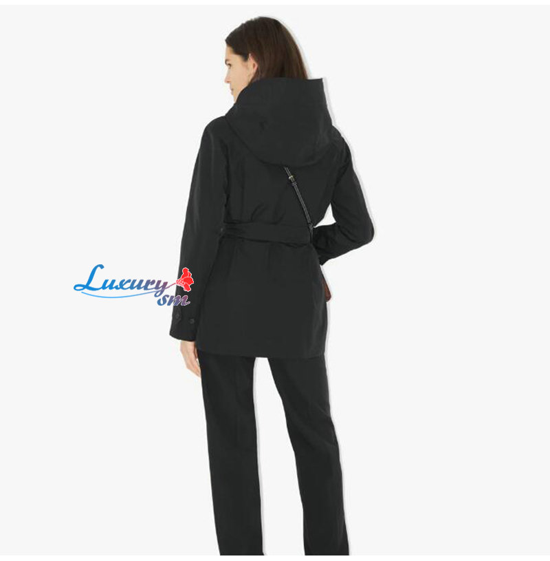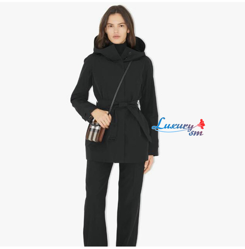 BURBERRY-80658031 버버리 블랙 테크니컬 코튼 파이유 후드 카 코트 여성용