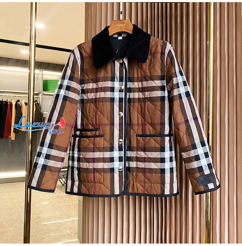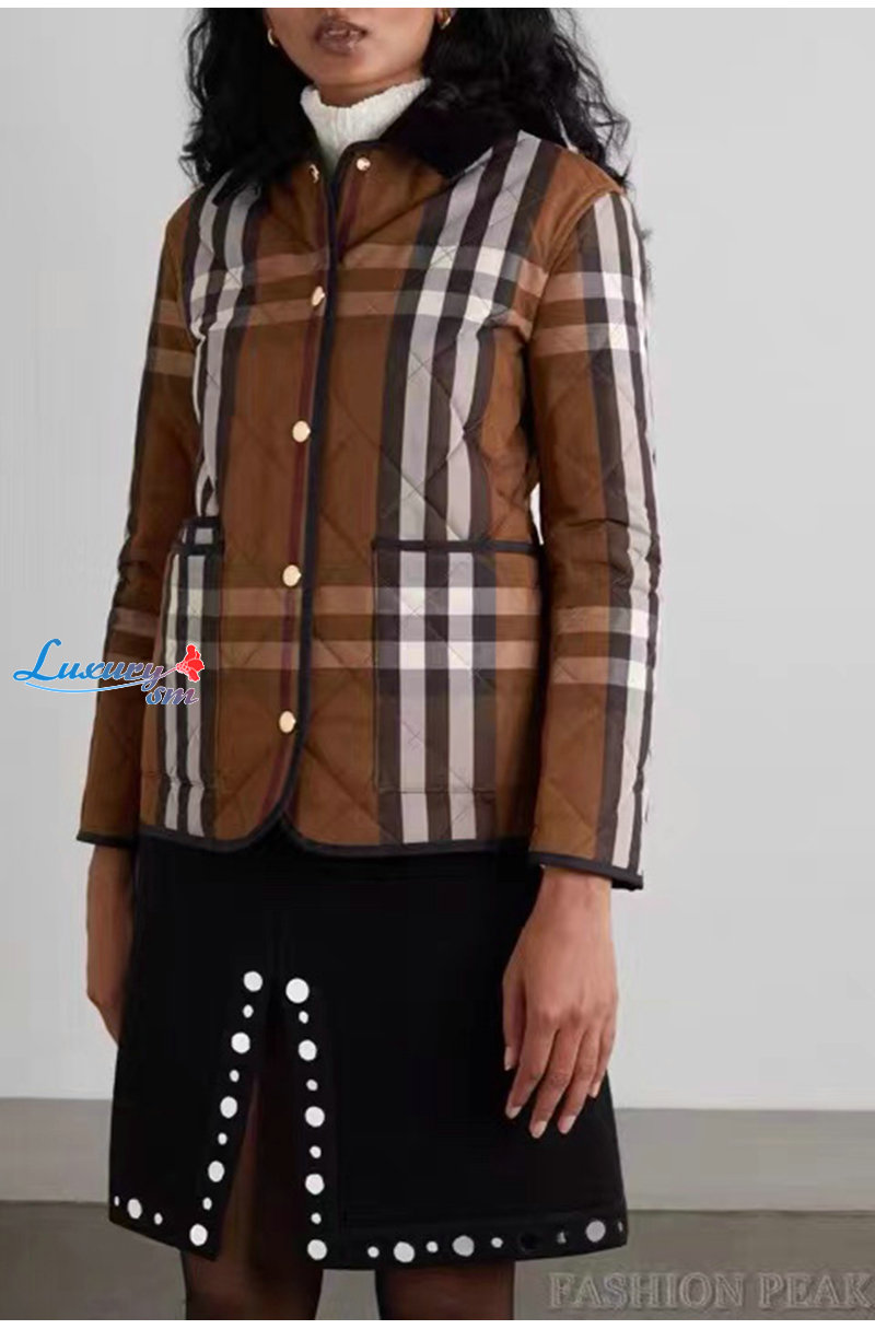 BURBERRY-09183 버버리 브라운 체크 무늬 퀄팅 재킷 여성용