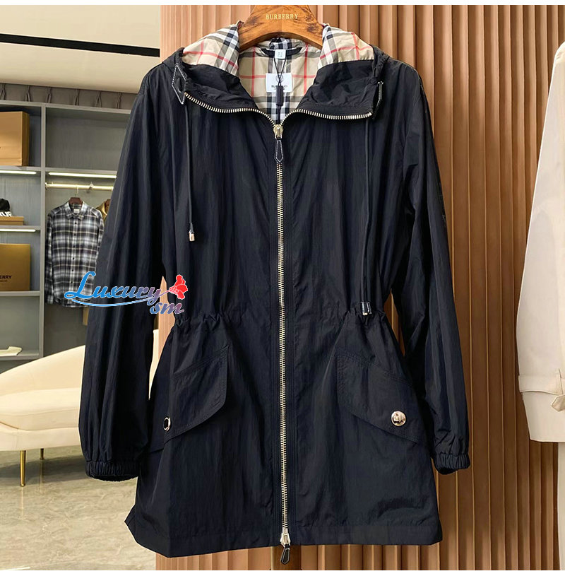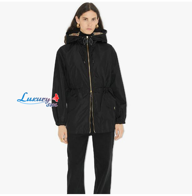 BURBERRY-80429011 버버리 블랙 나일론 후드 재킷 여성용