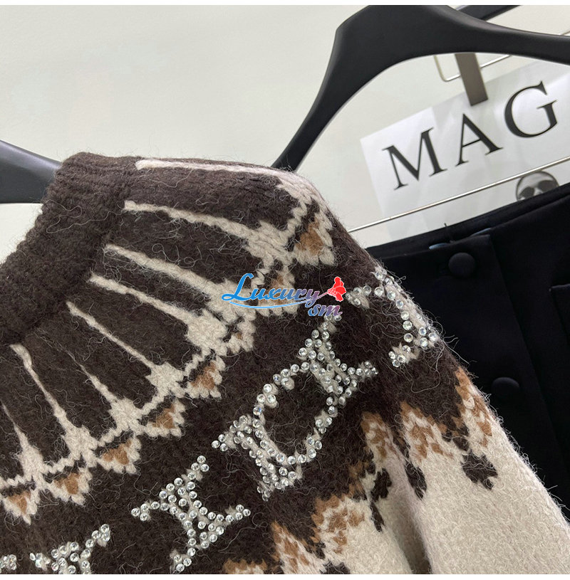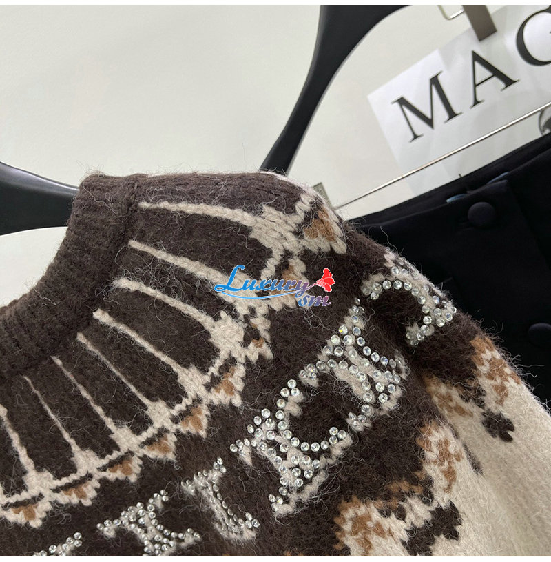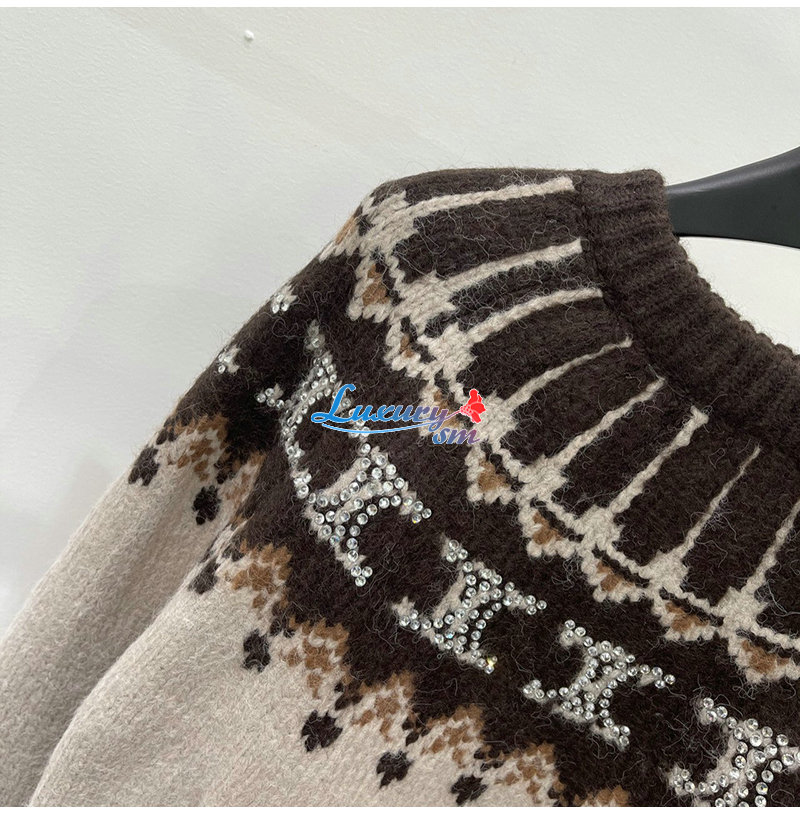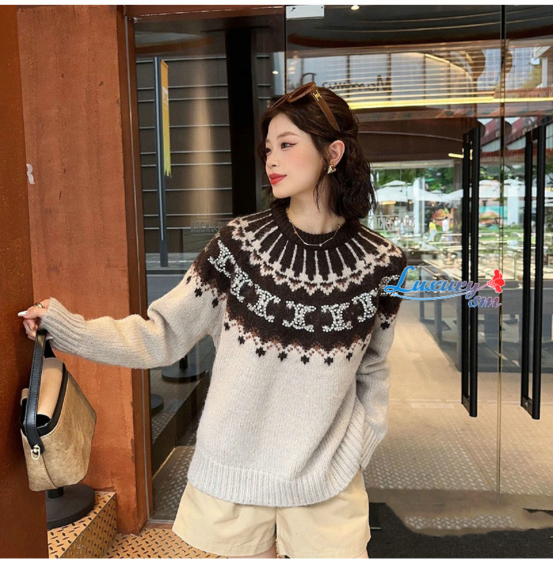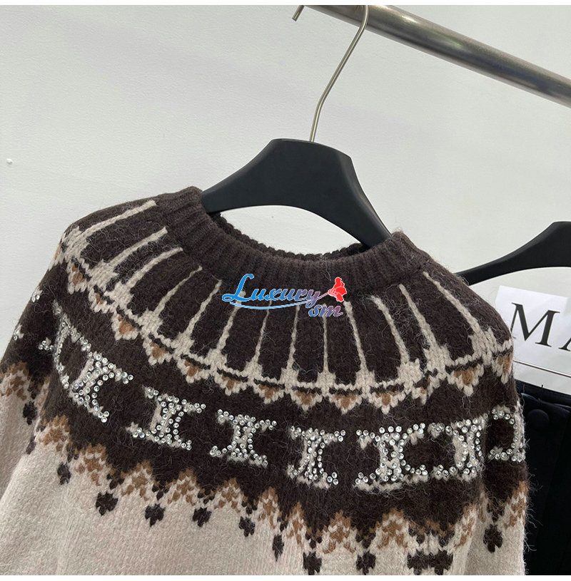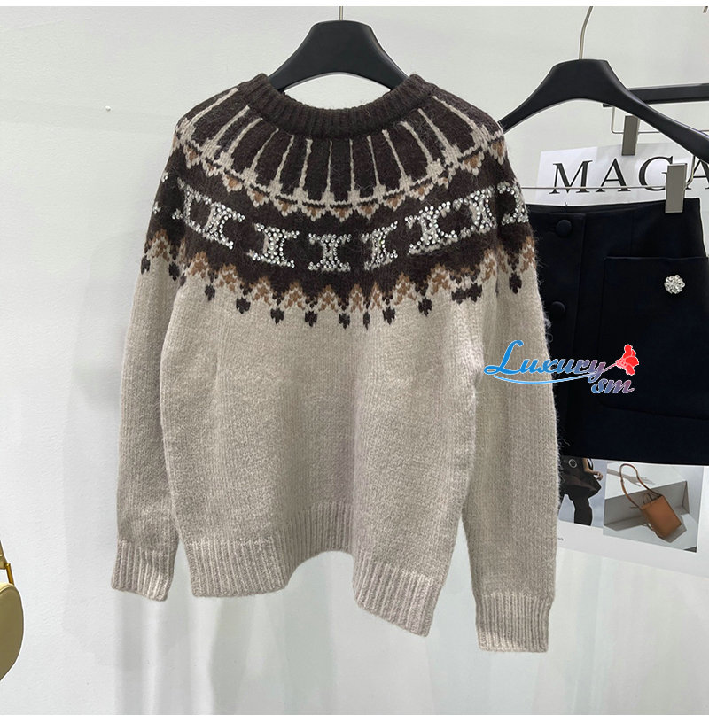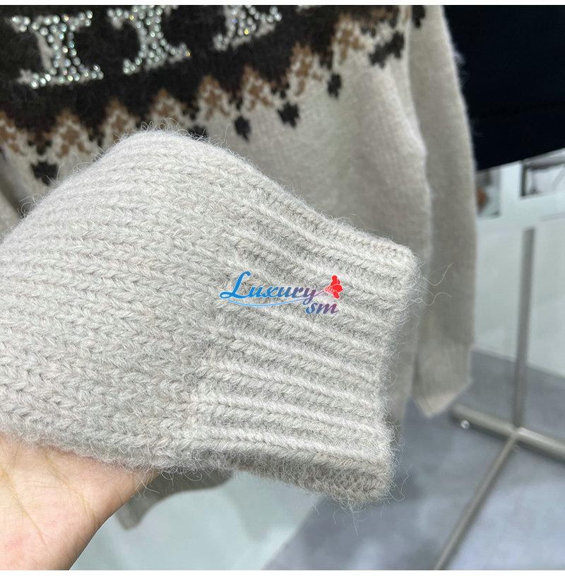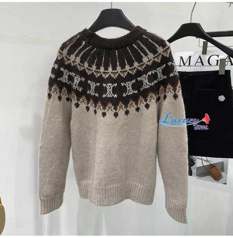CELINE-12192 셀린느 브라운 크리스탈 장식 스웨터 여성용