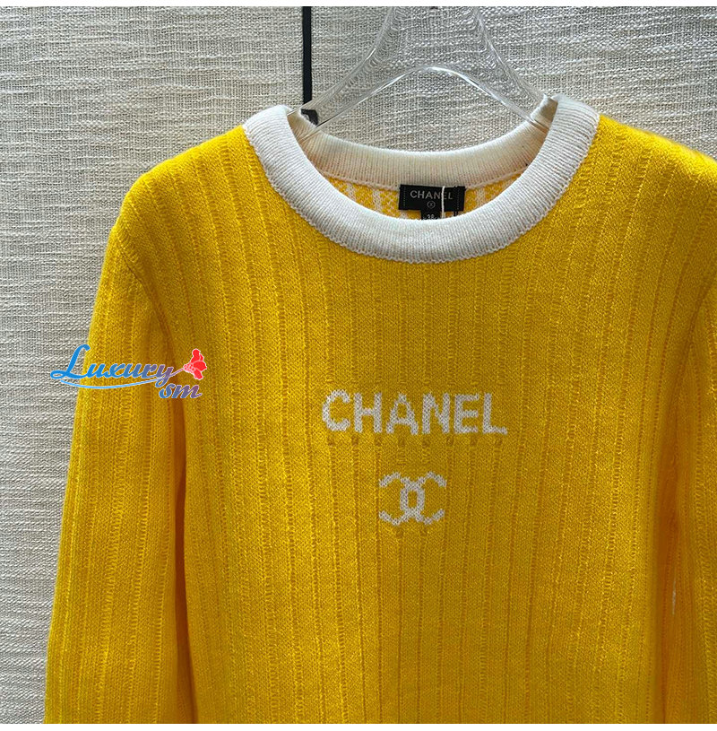CHANEL-12306 샤넬 옐로우 니트 코튼 스웨터 여성용