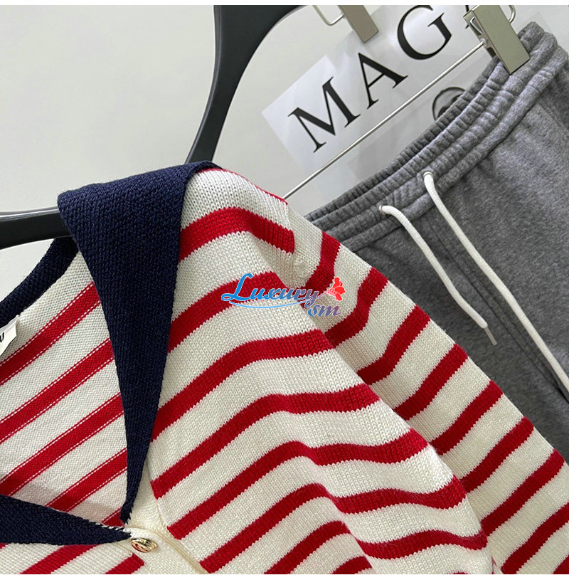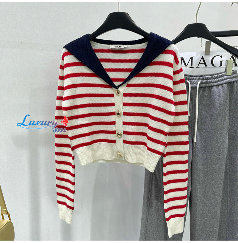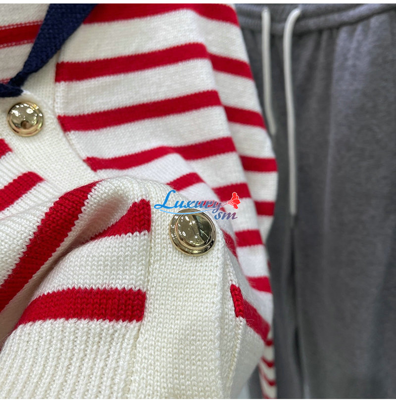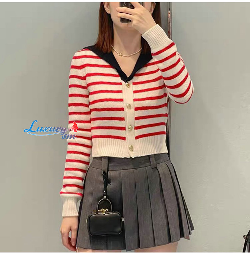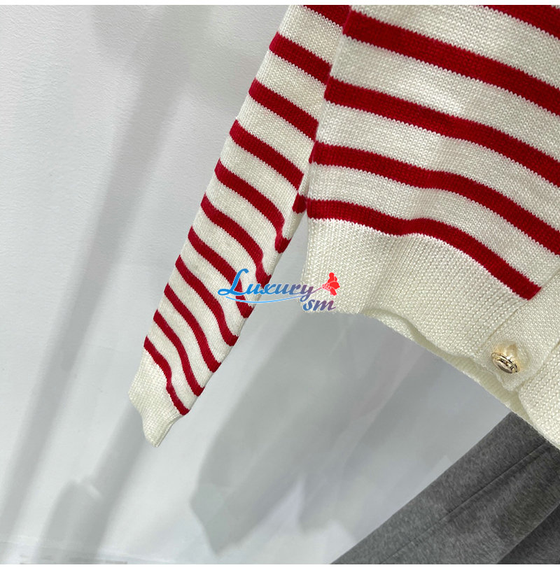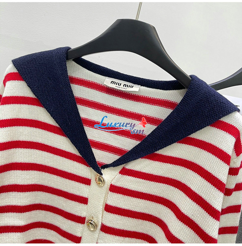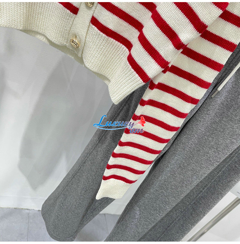 MIUMIU-01181 미우미우 화이트/레드 스트라이프 가디건 여성용