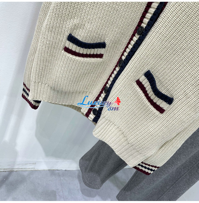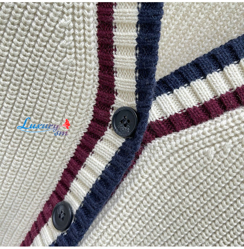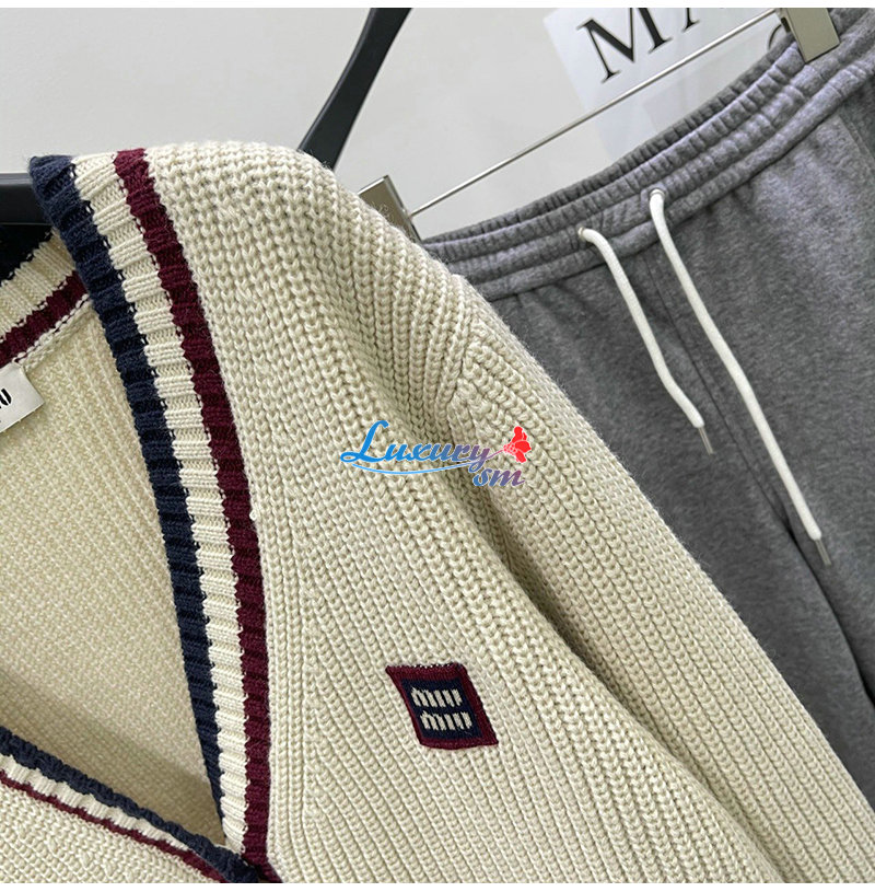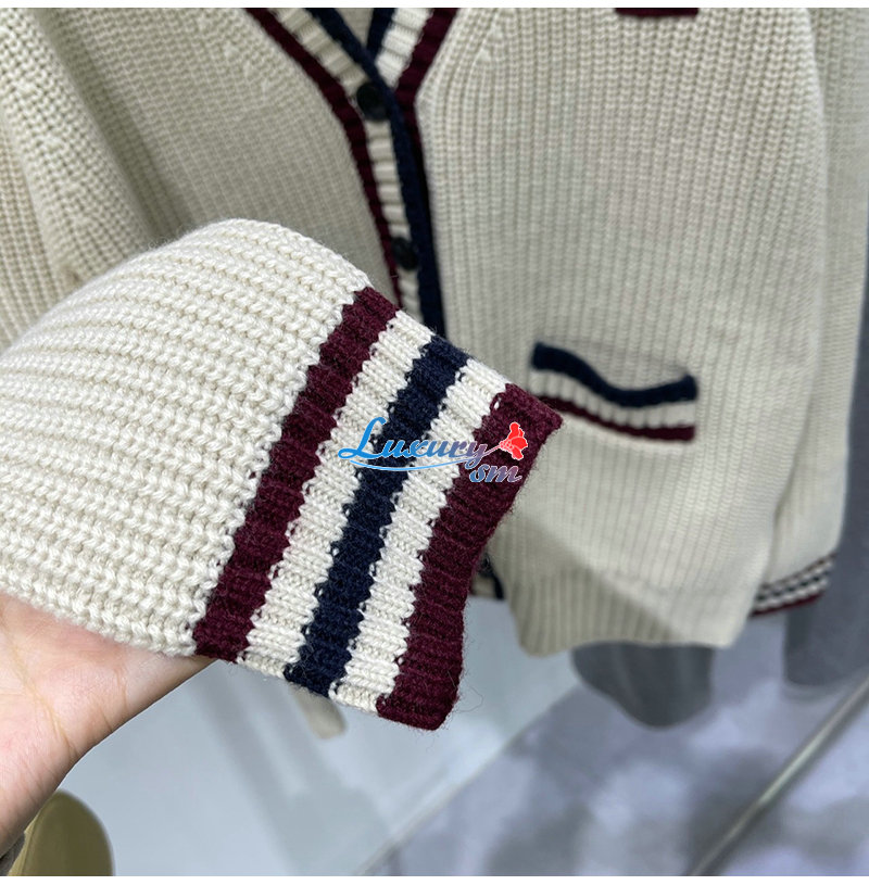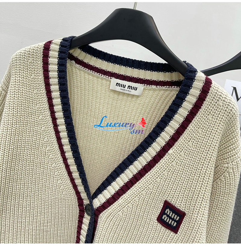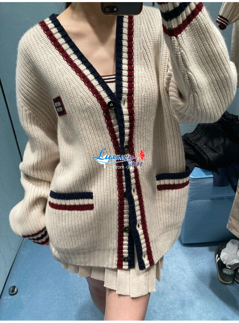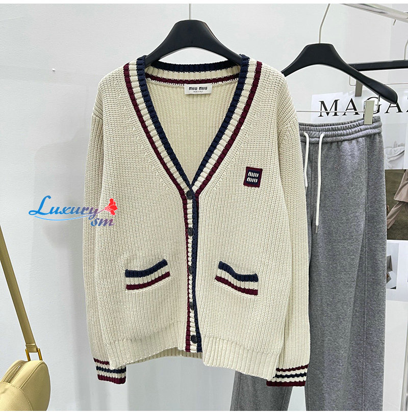 MIUMIU-01185 미우미우 화이트 스트라이프 장식 가디건 여성용