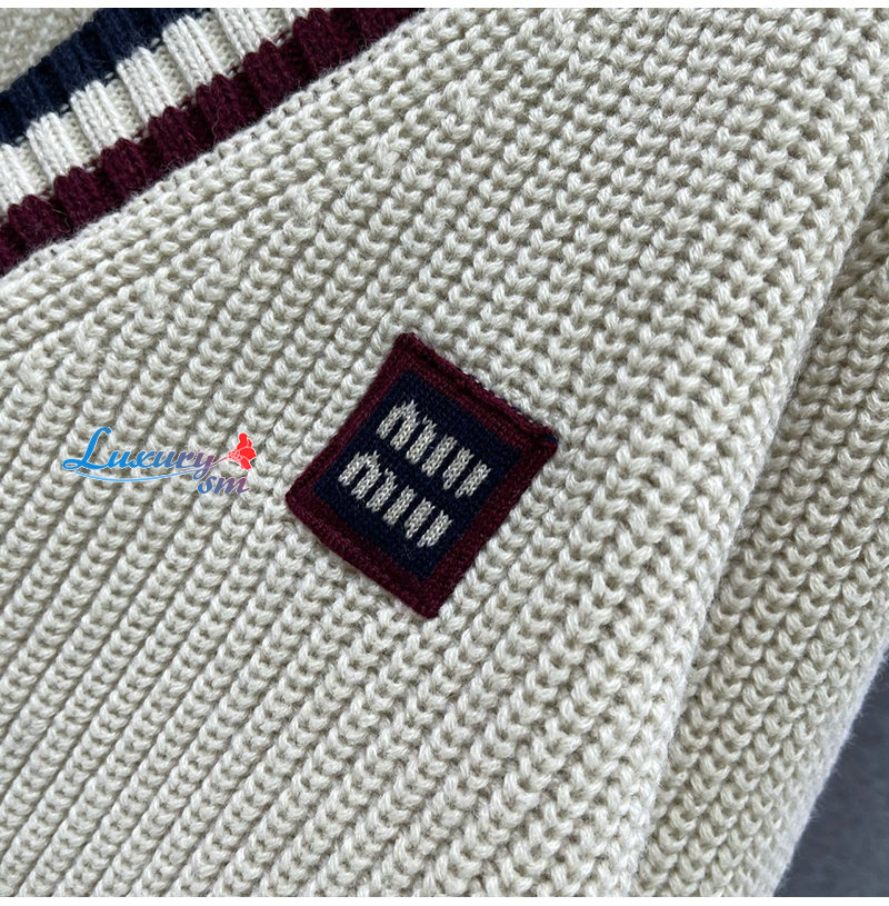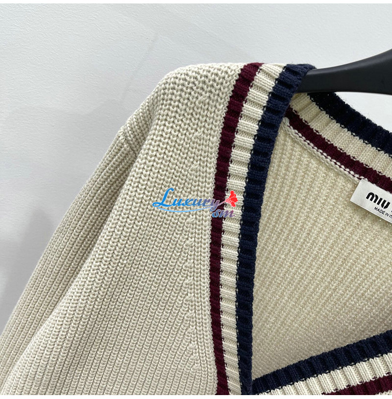 MIUMIU-01186 미우미우 화이트 스트라이프 장식 스웨터 여성용