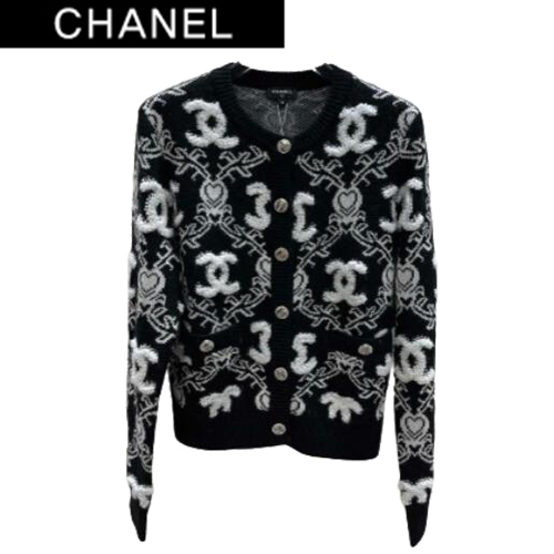 CHANEL-01214 샤넬 블랙 CC 로고 아플리케 장식 가디건 여성용