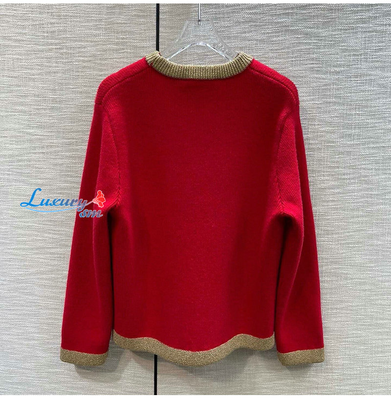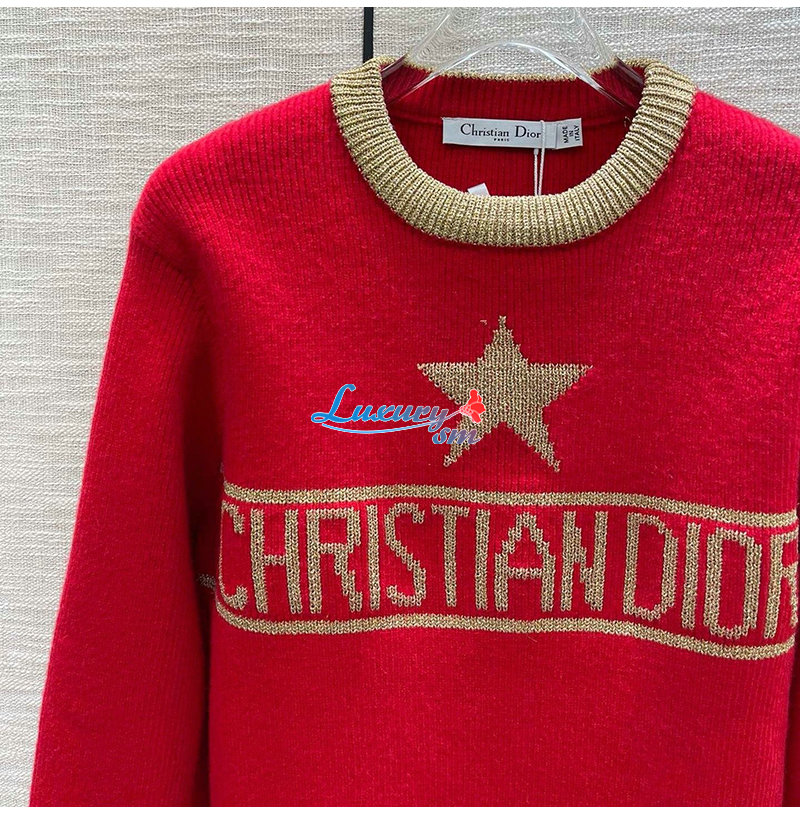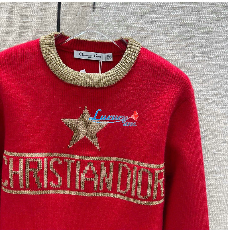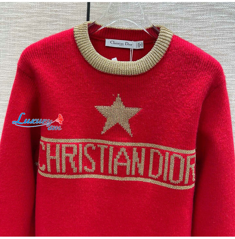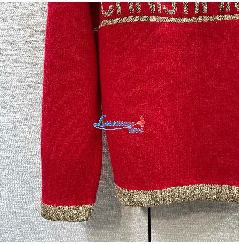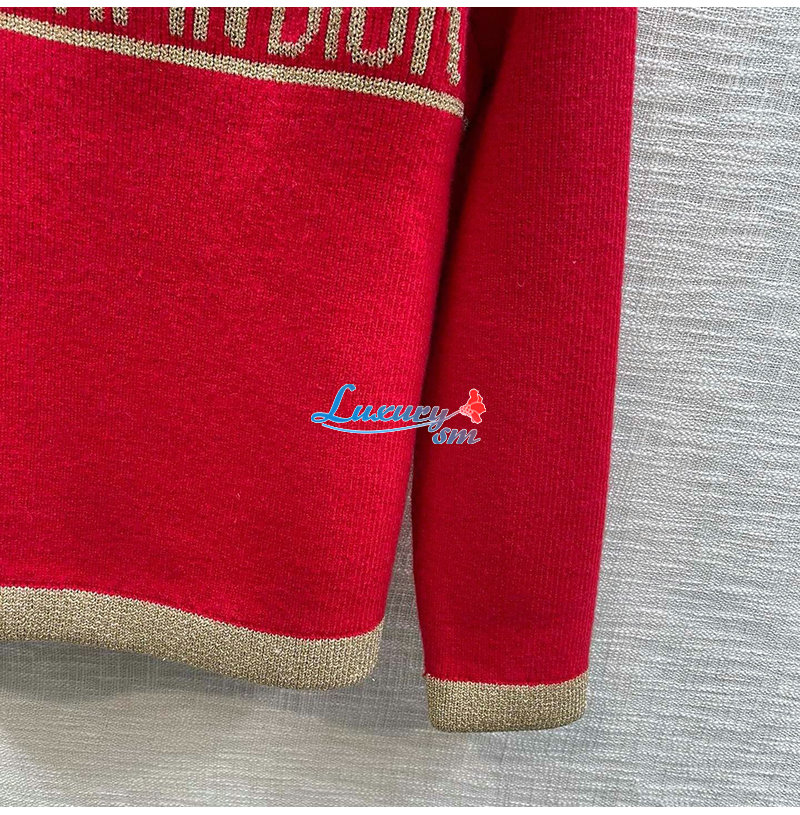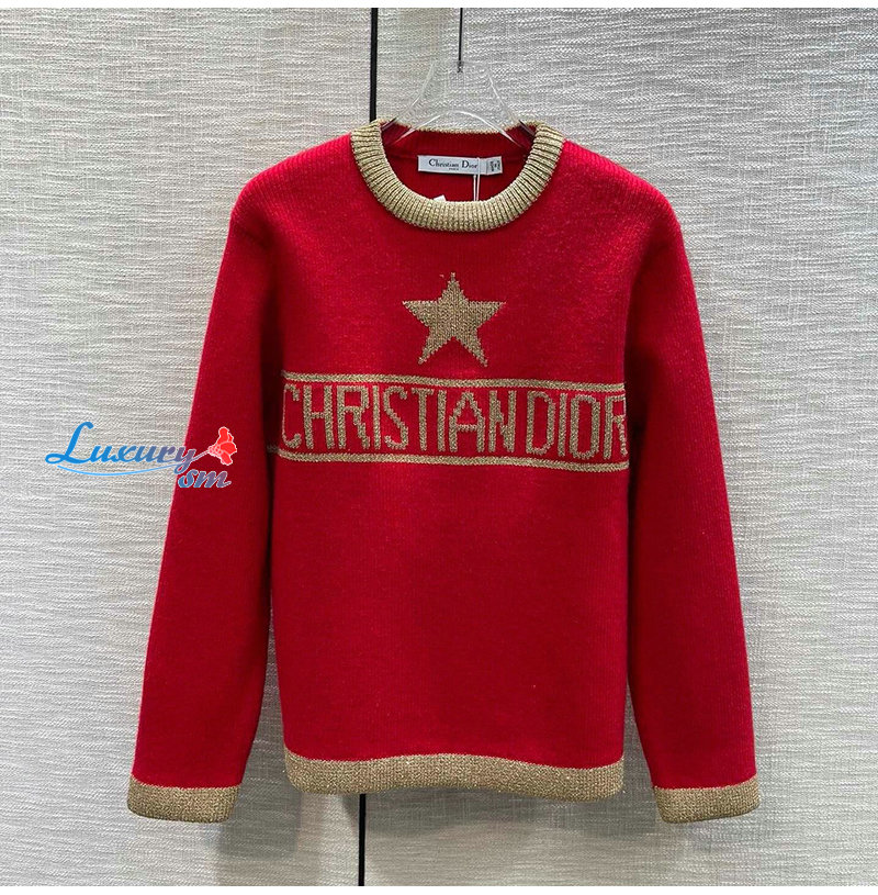 DIOR-01218 디올 레드/브라운 니트 코튼 스웨터 여성용