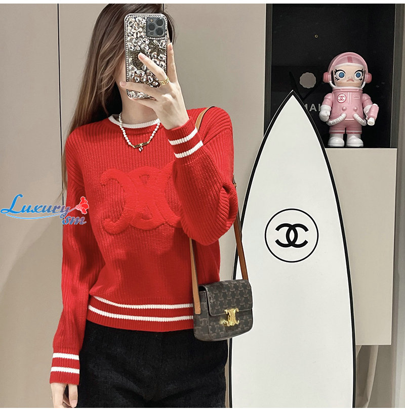 CELINE-01219 셀린느 레드 니트 코튼 스웨터