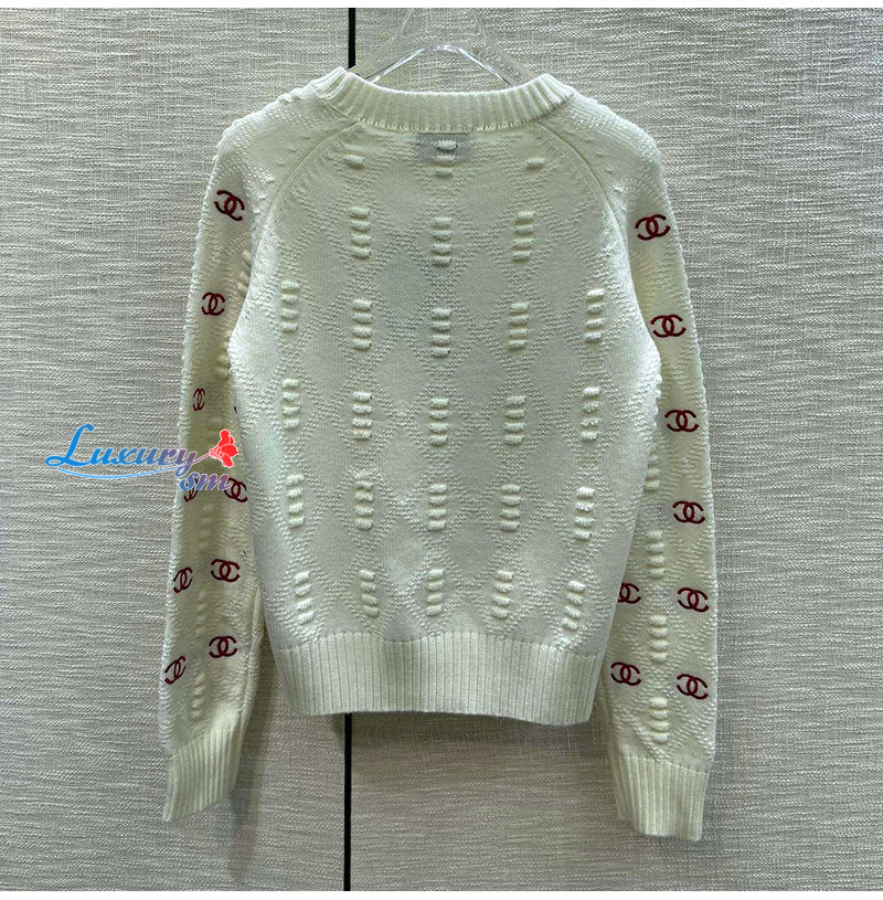 CHANEL-012115 샤넬 화이트 CC 로고 아플리케 장식 스웨터 여성용