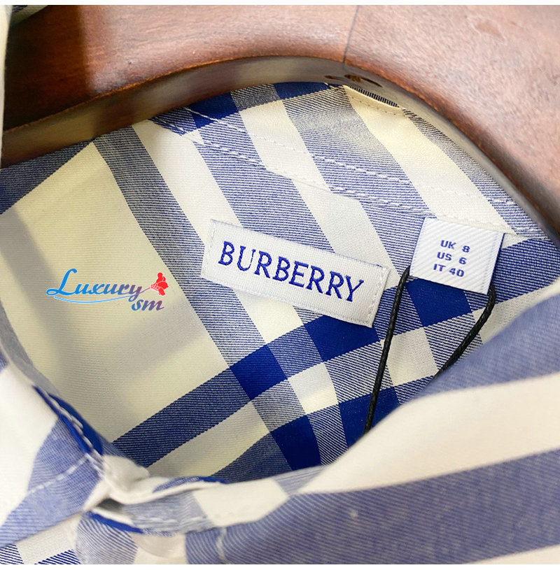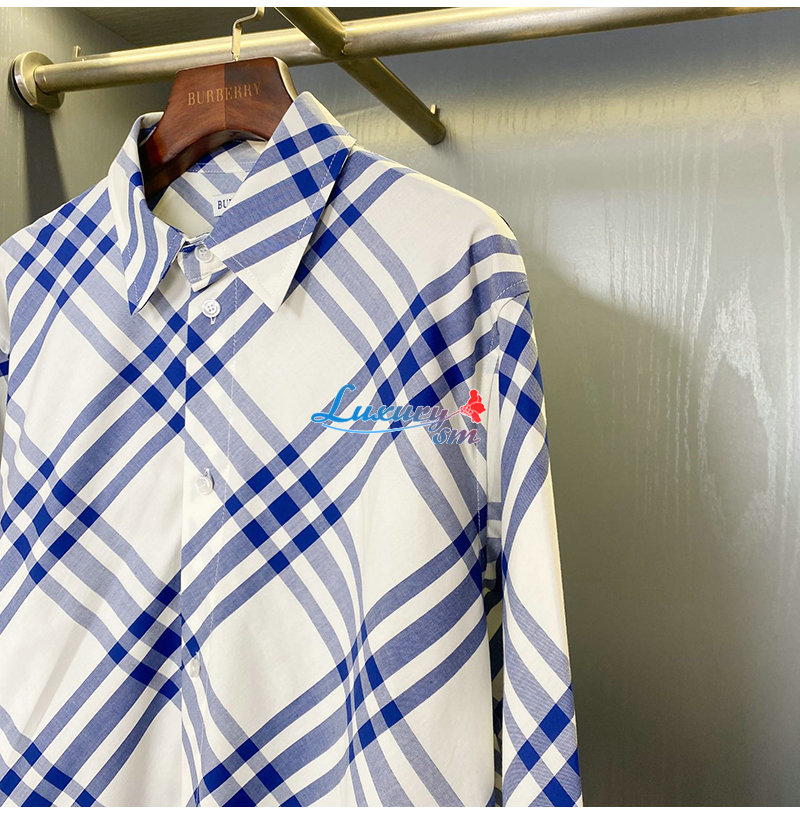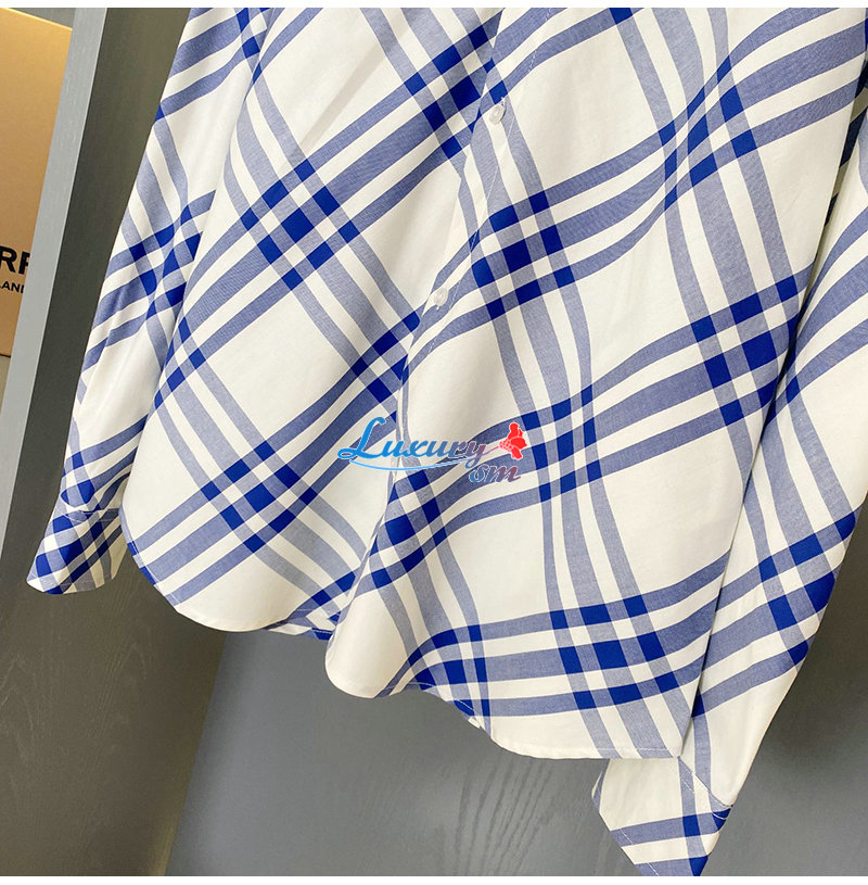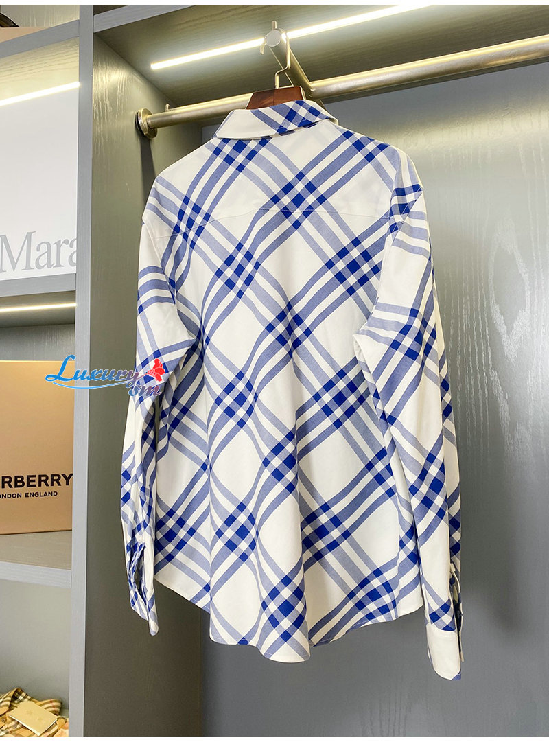 BURBERRY-80776741 버버리 블루 체크 코튼 플란넬 셔츠 여성용